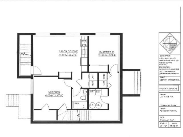 | Salon | Sous-sol | 13.2x8 P | Linoléum | |