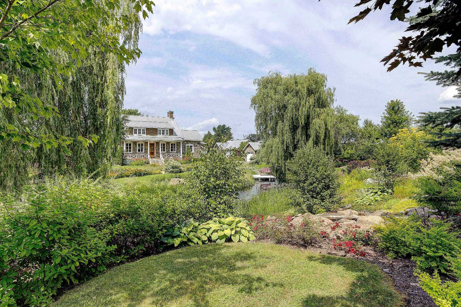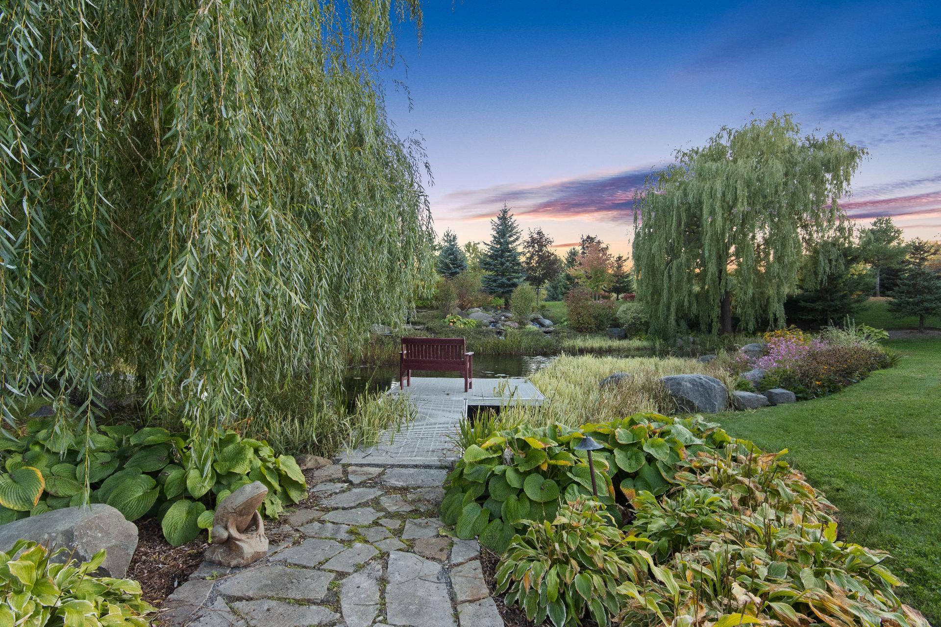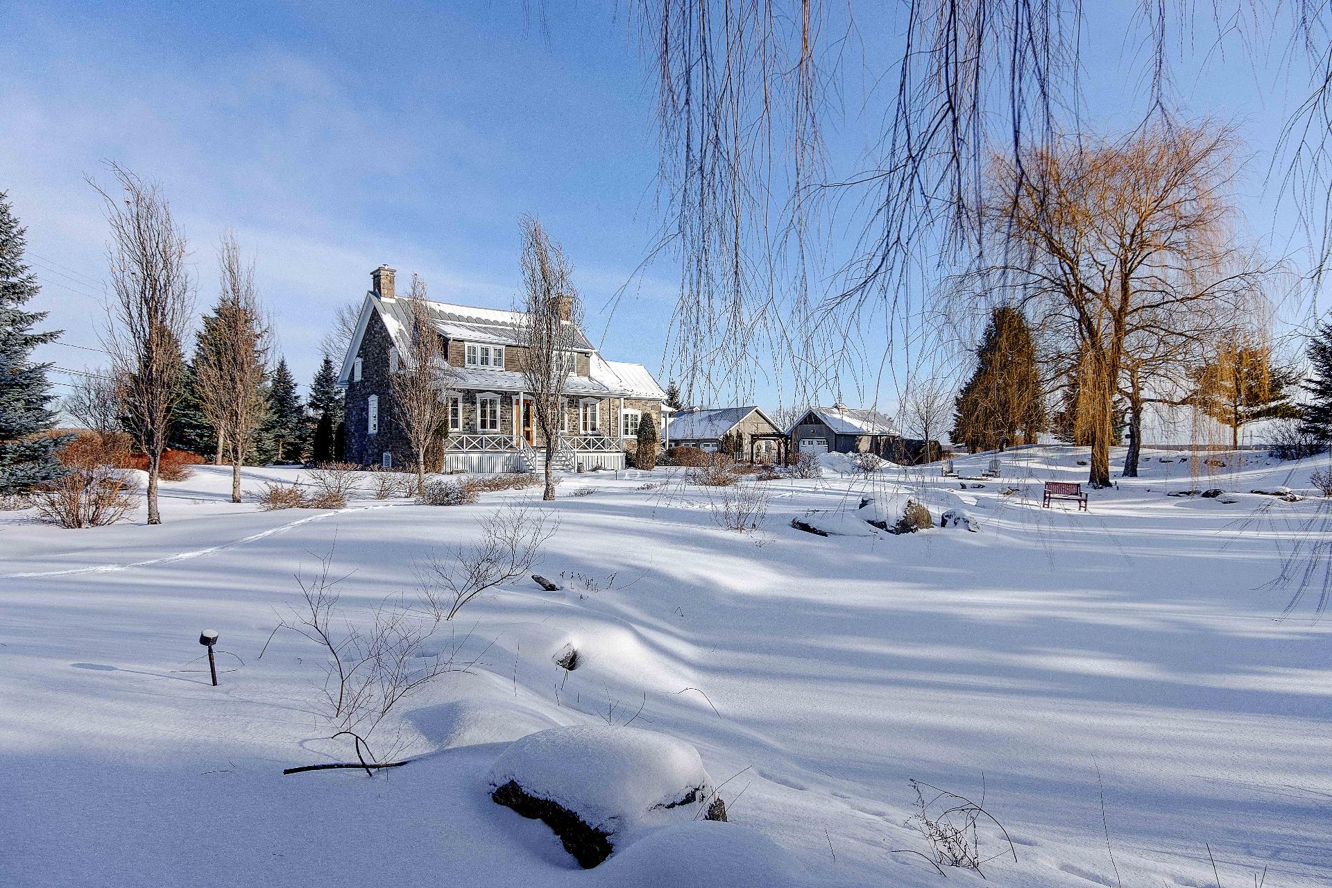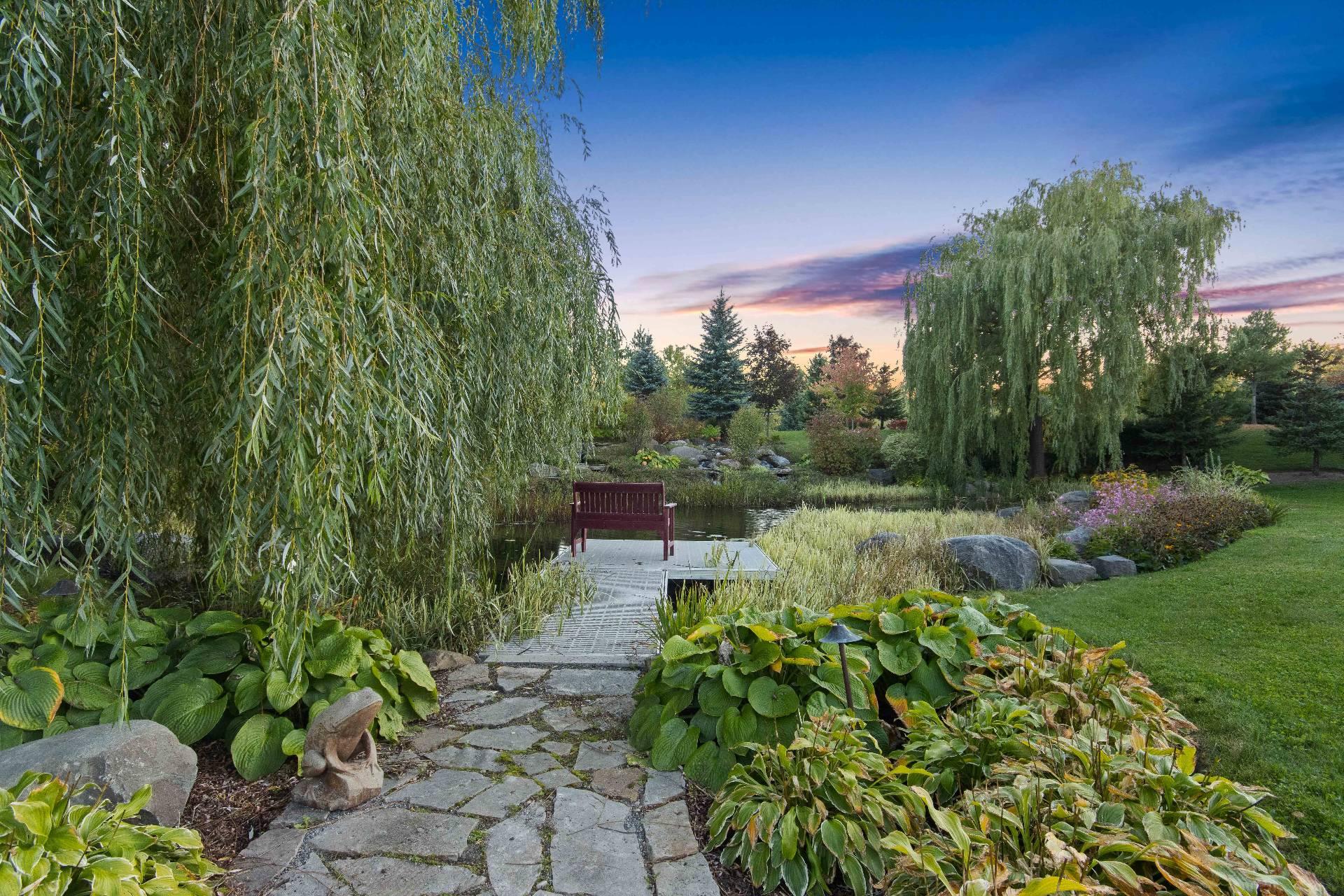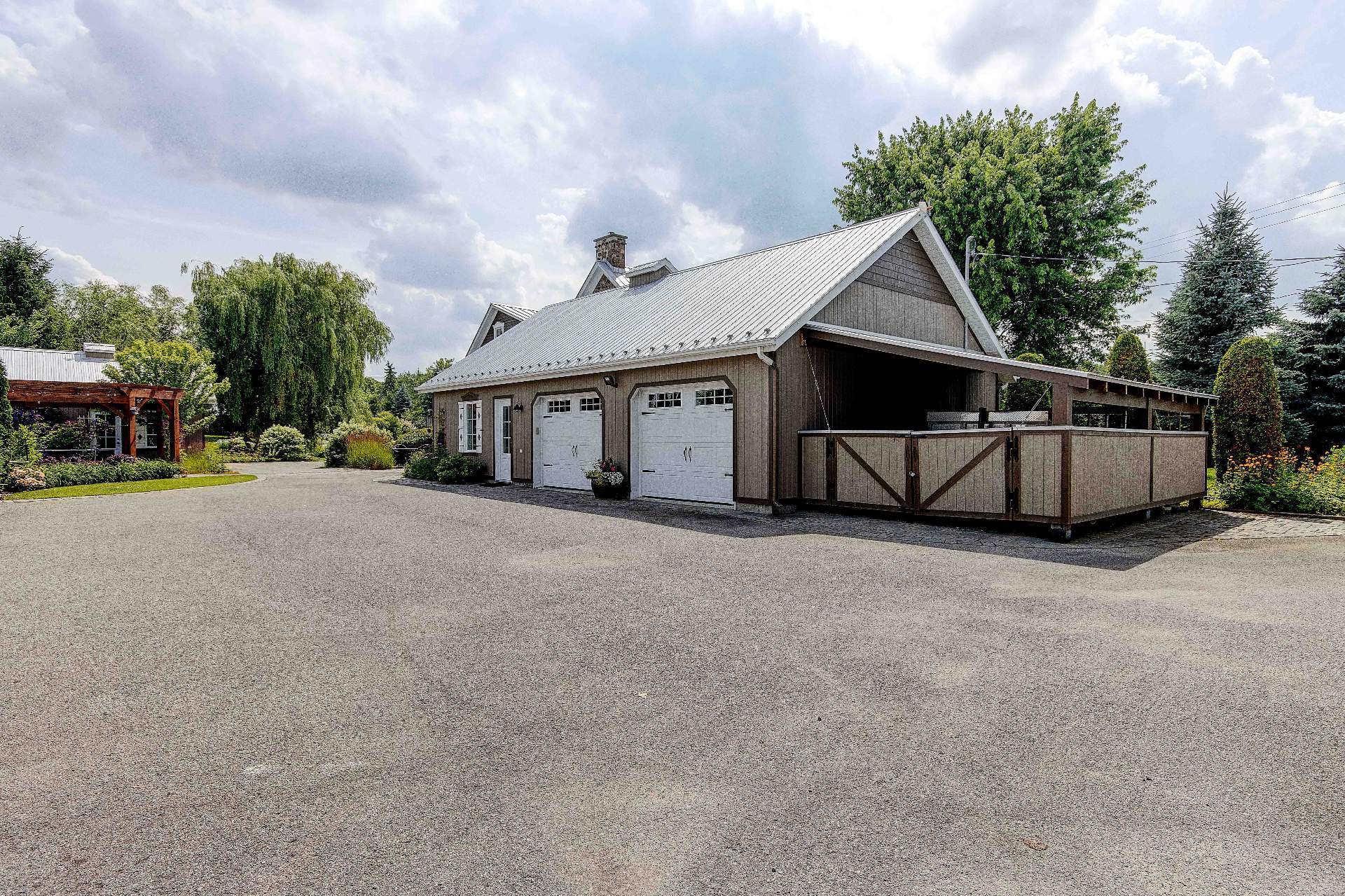 À l'extérieur, le terrain est muni d'un aménagement professionnel et bien pensé. Plusieurs bâtiments accessoires (garage, bureaux et remise). La piscine creusée et chauffée s'étend, entourée d'une invitante terrasse en bois. L'étang, bordé de végétation naturelle, complète ce tableau paysager en reflétant des jeux de lumière changeants.