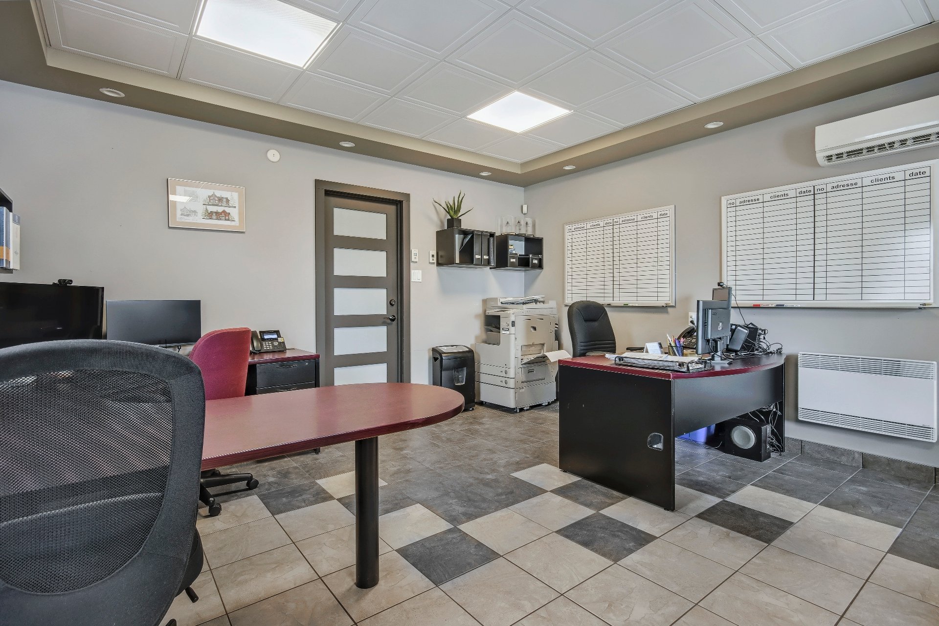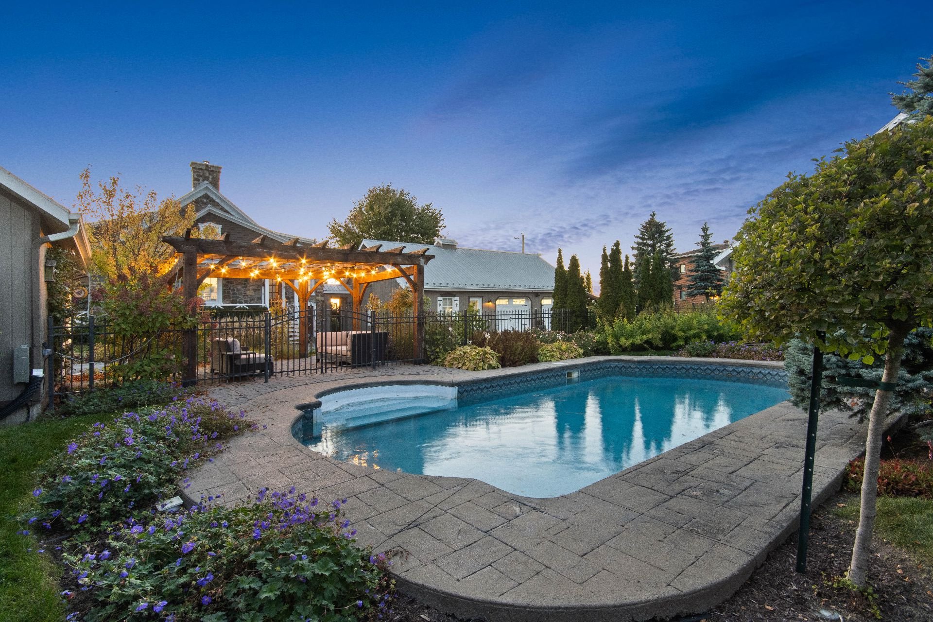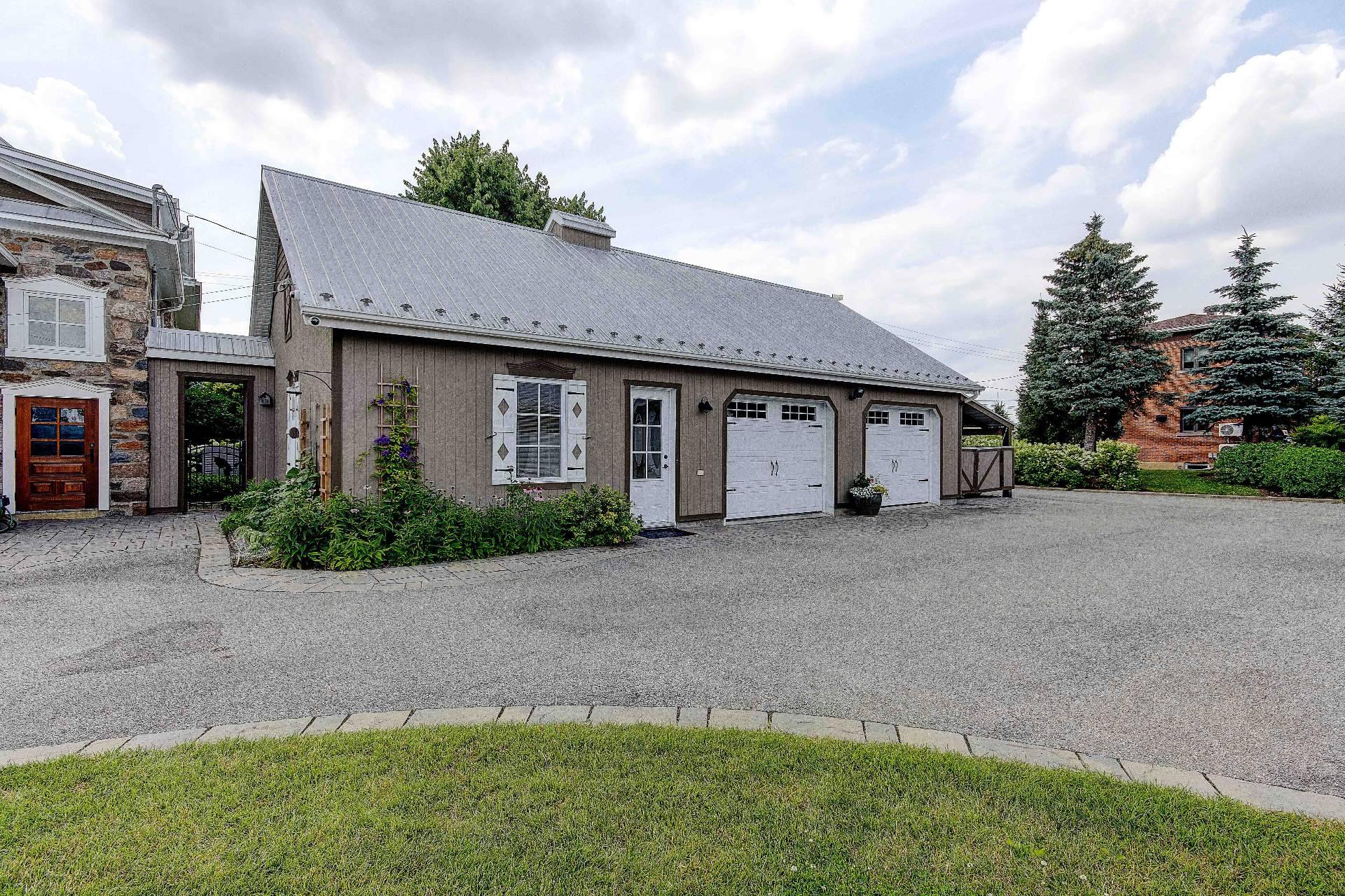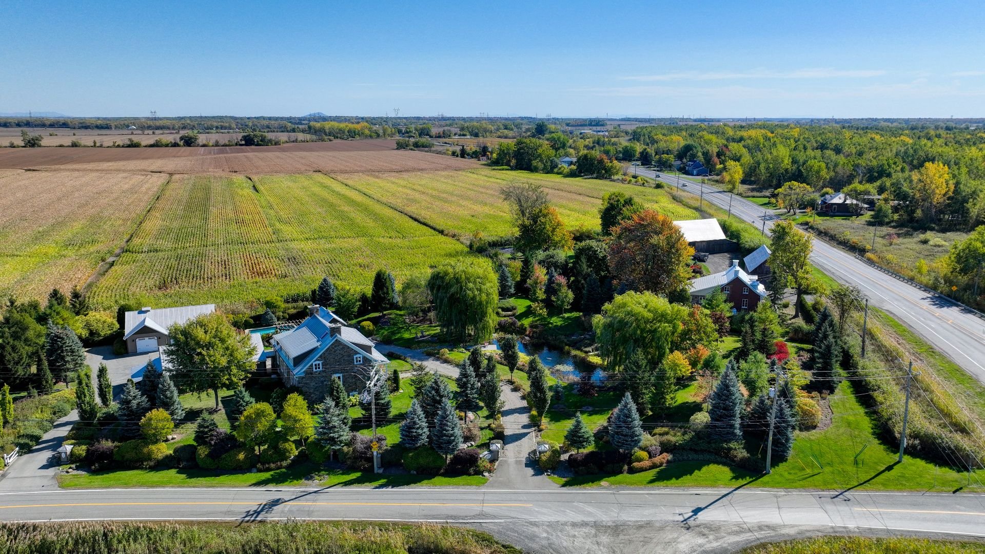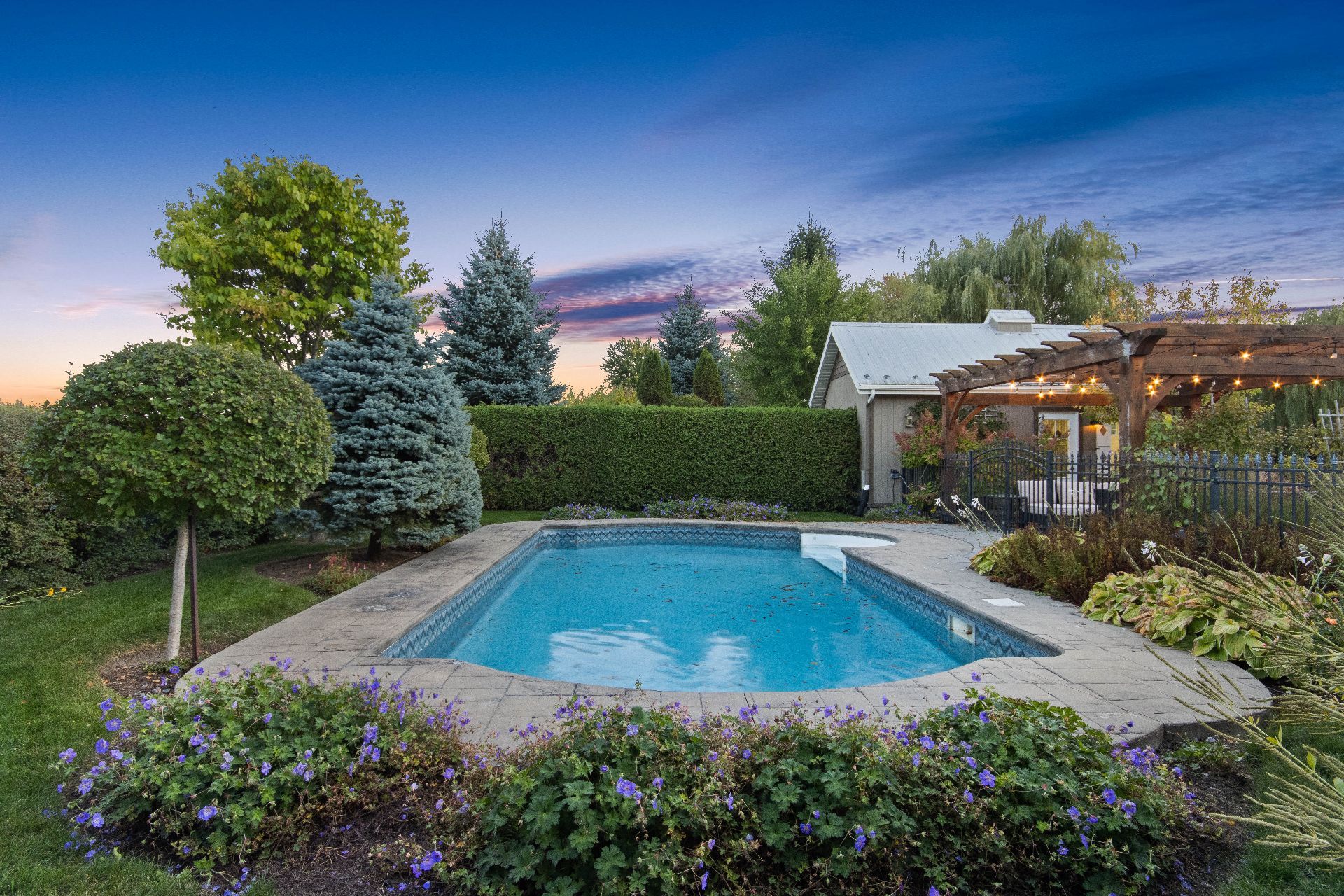 À l'extérieur, le terrain est muni d'un aménagement professionnel et bien pensé. Plusieurs bâtiments accessoires (garage, bureaux et remise). La piscine creusée et chauffée s'étend, entourée d'une invitante terrasse en bois. L'étang, bordé de végétation naturelle, complète ce tableau paysager en reflétant des jeux de lumière changeants.