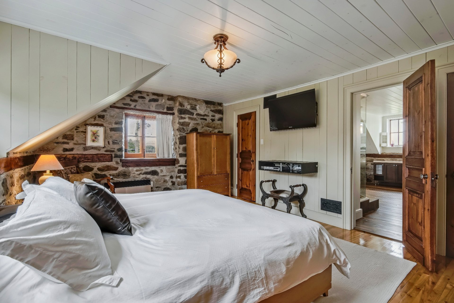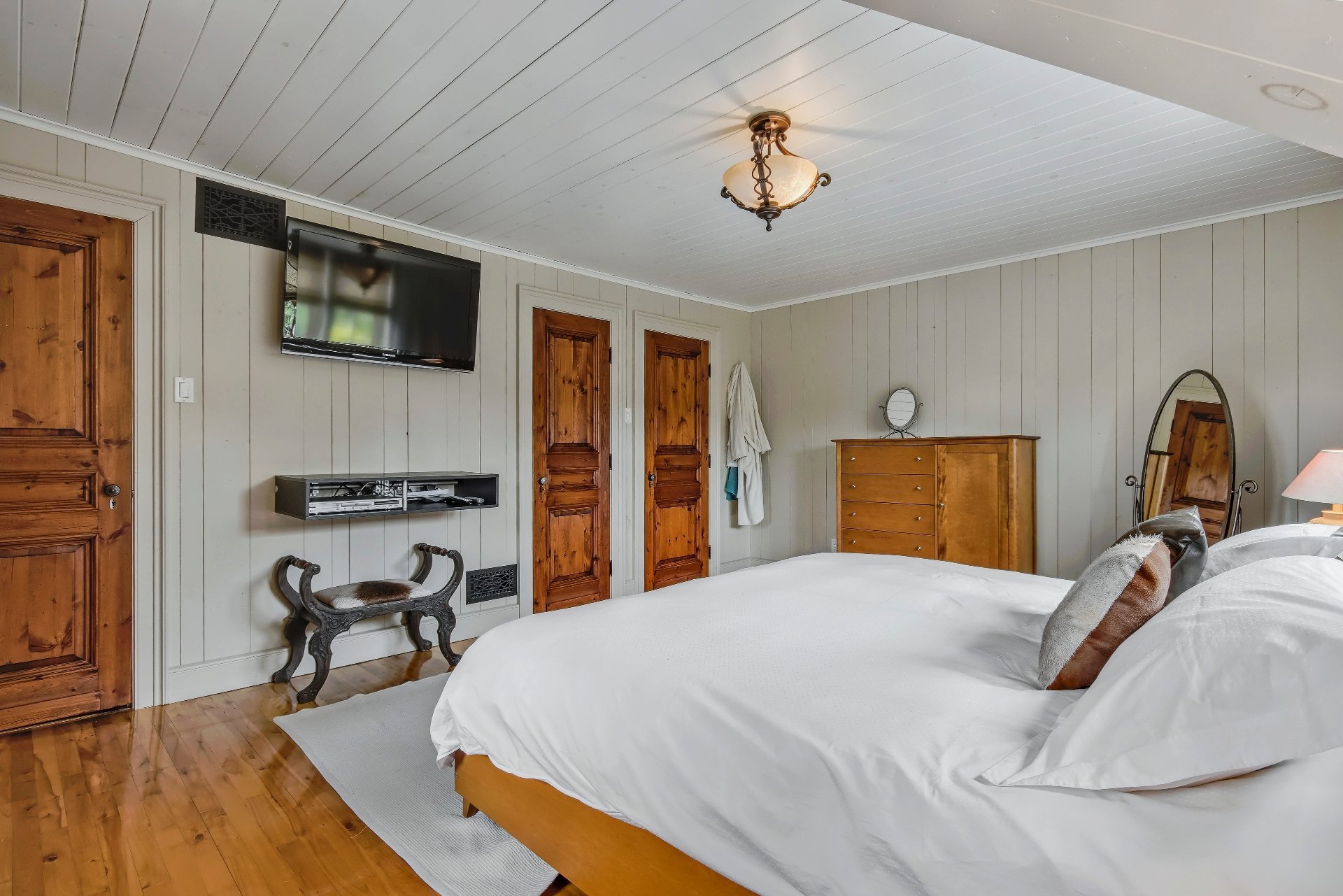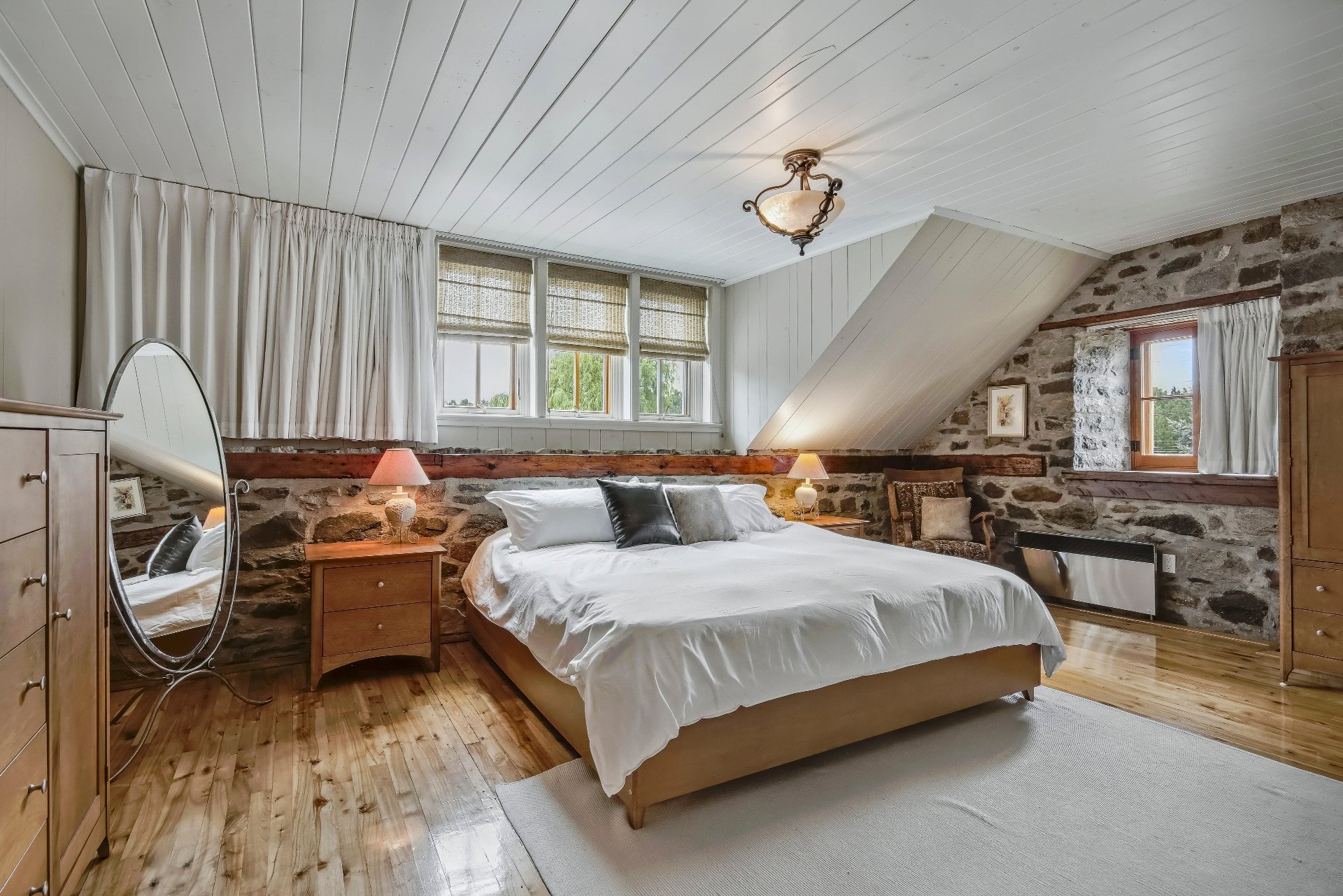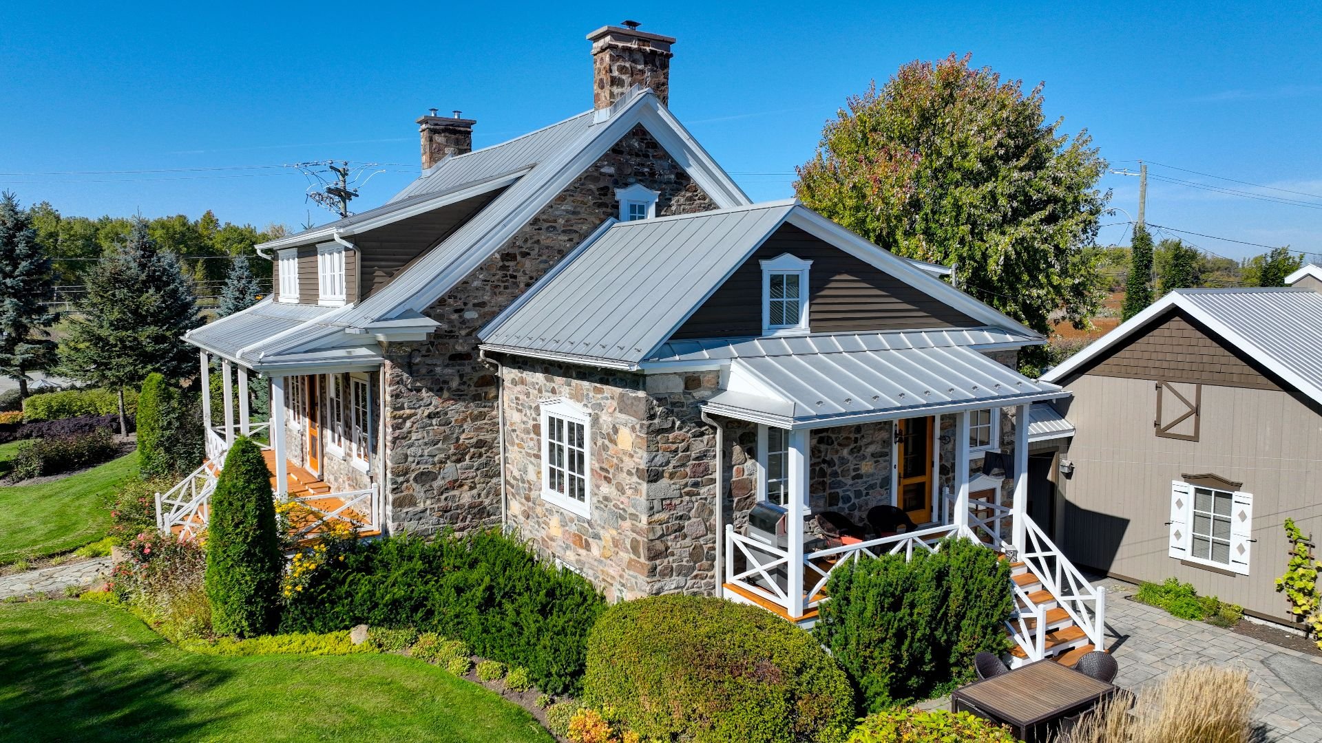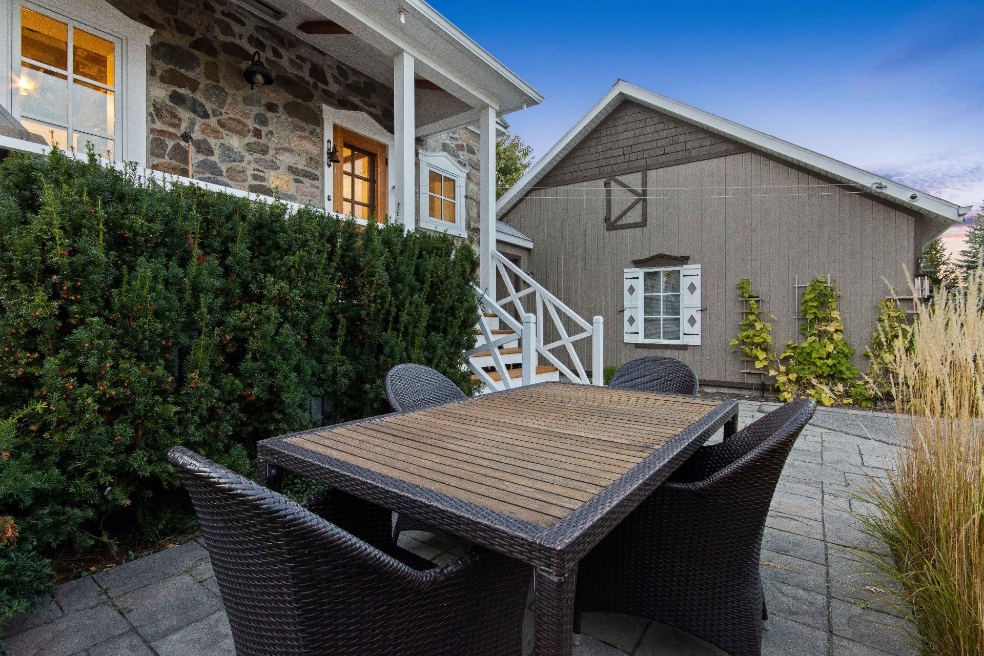 À l'extérieur, le terrain est muni d'un aménagement professionnel et bien pensé. Plusieurs bâtiments accessoires (garage, bureaux et remise). La piscine creusée et chauffée s'étend, entourée d'une invitante terrasse en bois. L'étang, bordé de végétation naturelle, complète ce tableau paysager en reflétant des jeux de lumière changeants.