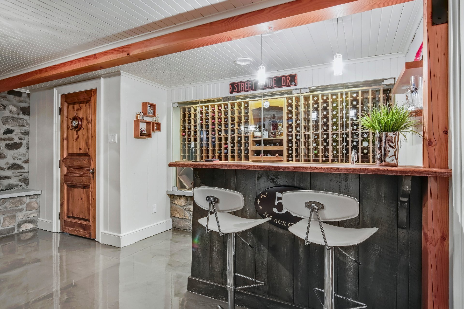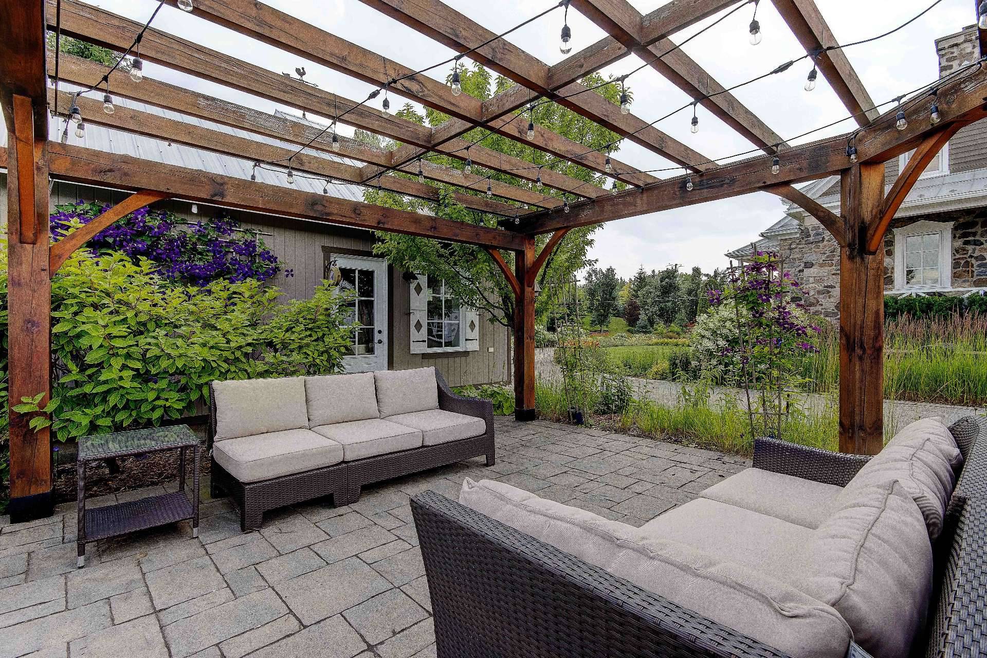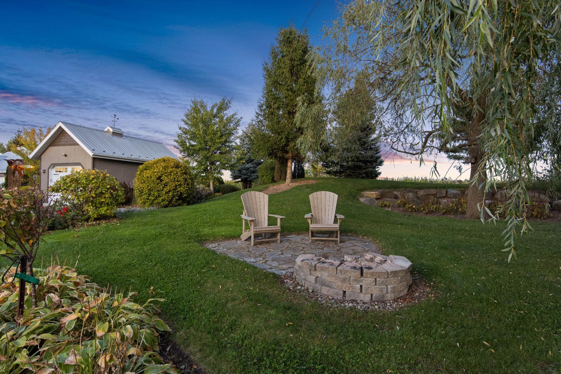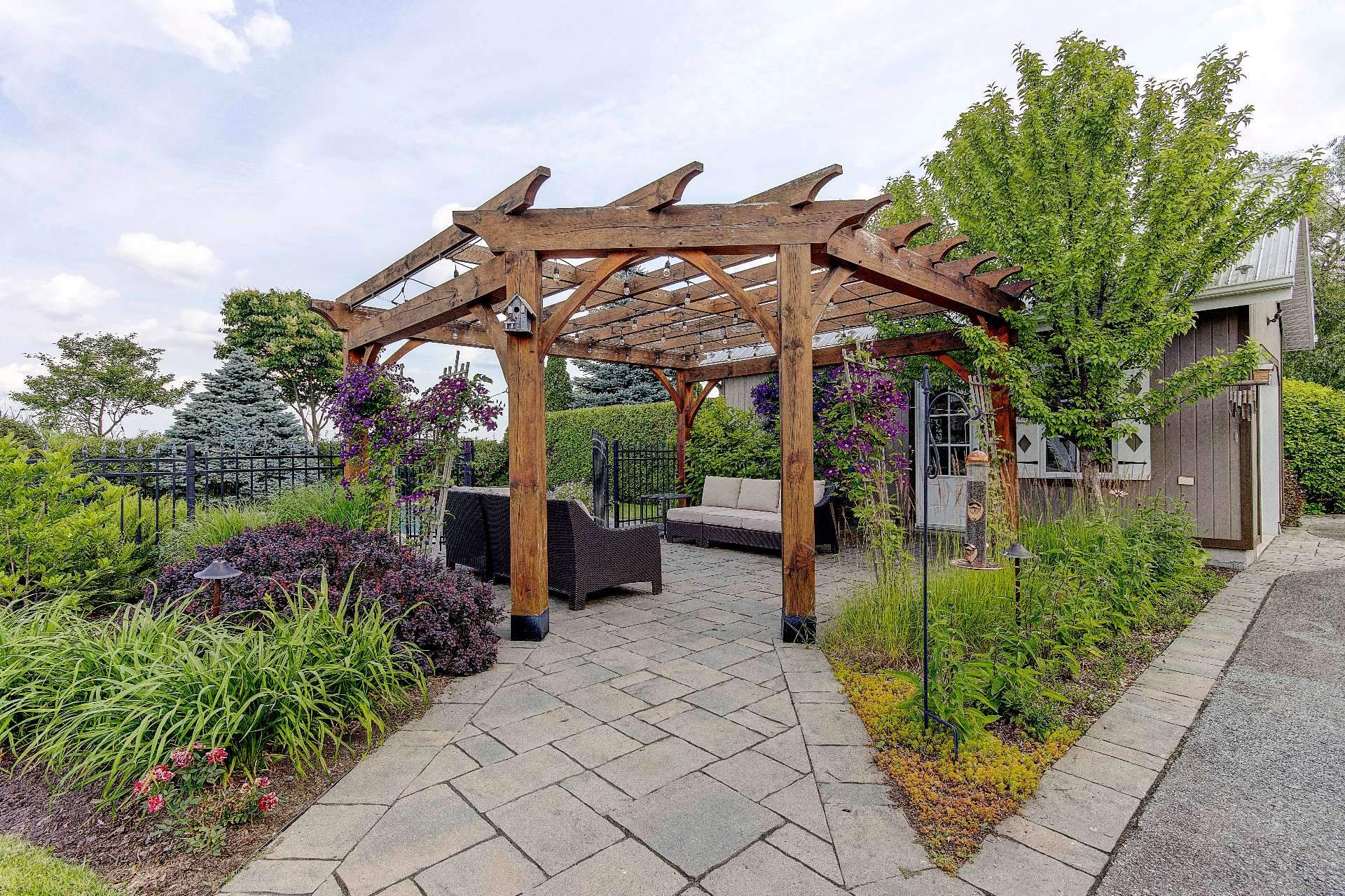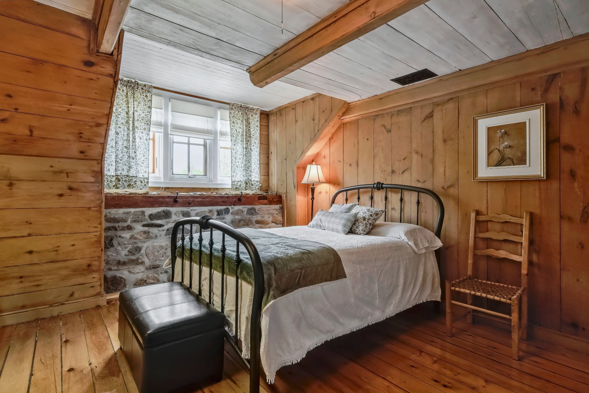 À l'extérieur, le terrain est muni d'un aménagement professionnel et bien pensé. Plusieurs bâtiments accessoires (garage, bureaux et remise). La piscine creusée et chauffée s'étend, entourée d'une invitante terrasse en bois. L'étang, bordé de végétation naturelle, complète ce tableau paysager en reflétant des jeux de lumière changeants.