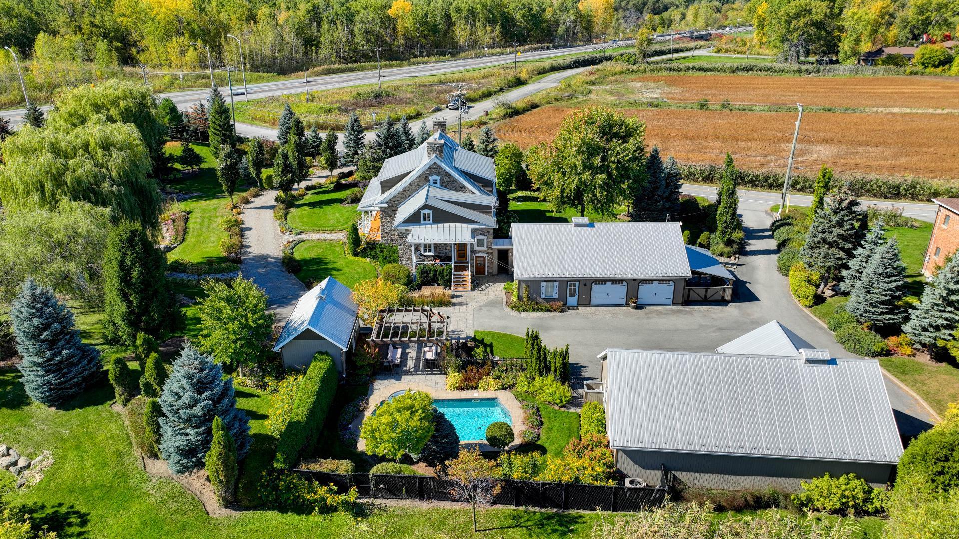 Système alarme relié feu et vol, caméras et enregistreur, réseau filaire et switch dans bureau, pompes/timer étang, accs piscine, thermopompe piscine, luminaires, rideaux et pôles, stores et toiles, ouvres portes garages(6) et manettes(4), balayeuse centrale et accs, supports télé(3) muraux, filtreur à eau, lave-vaisselle, 2 frigos cuisine, four et micro-ondes encastré, Plaque induction, supports à pneus garages(2), système rangement mural Slatwall garages et sous-sol et accs.
