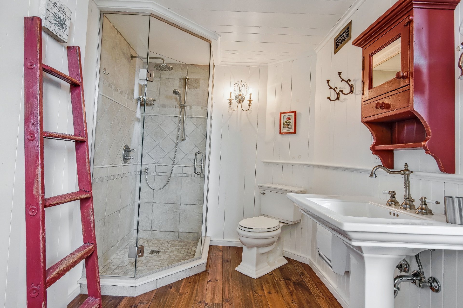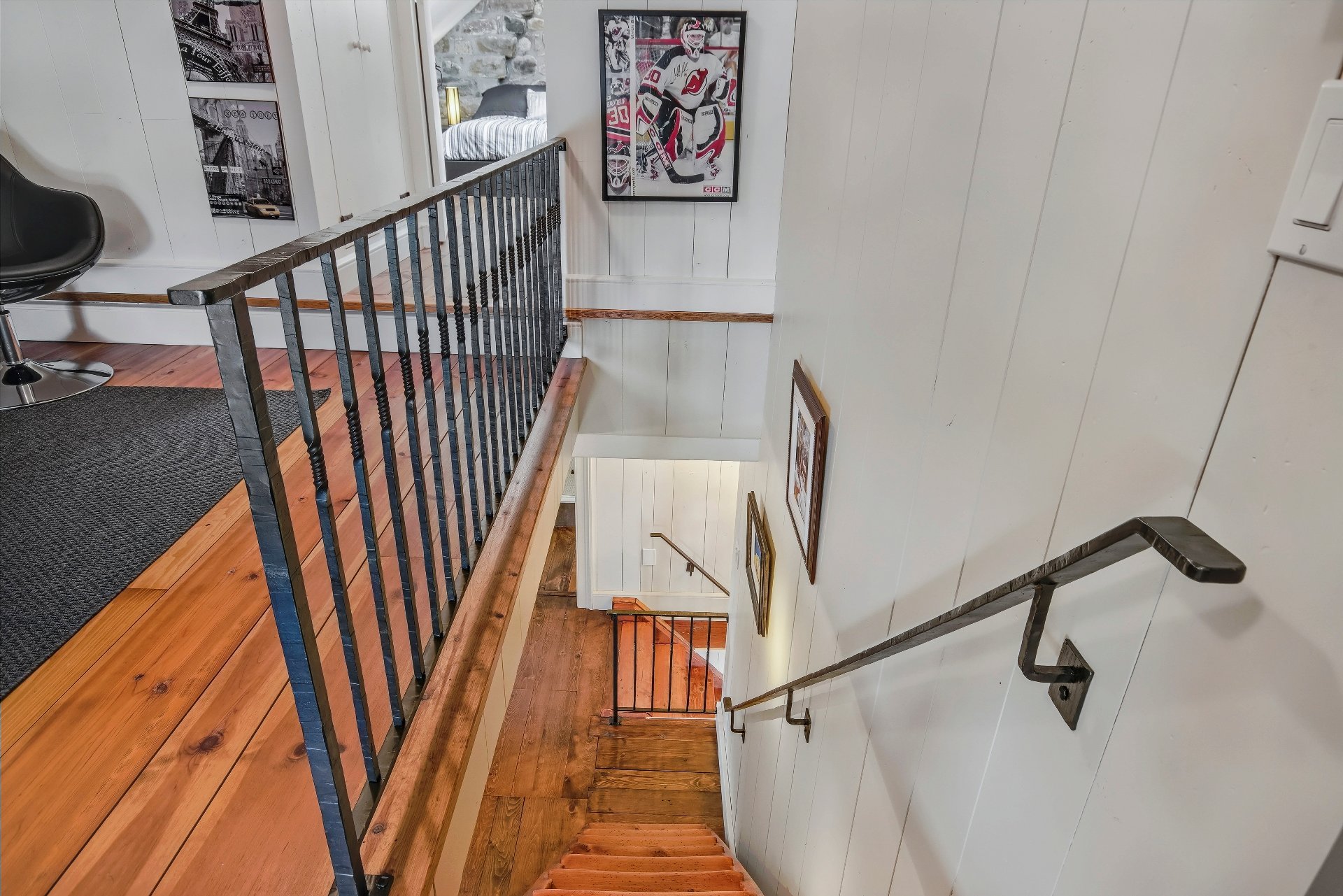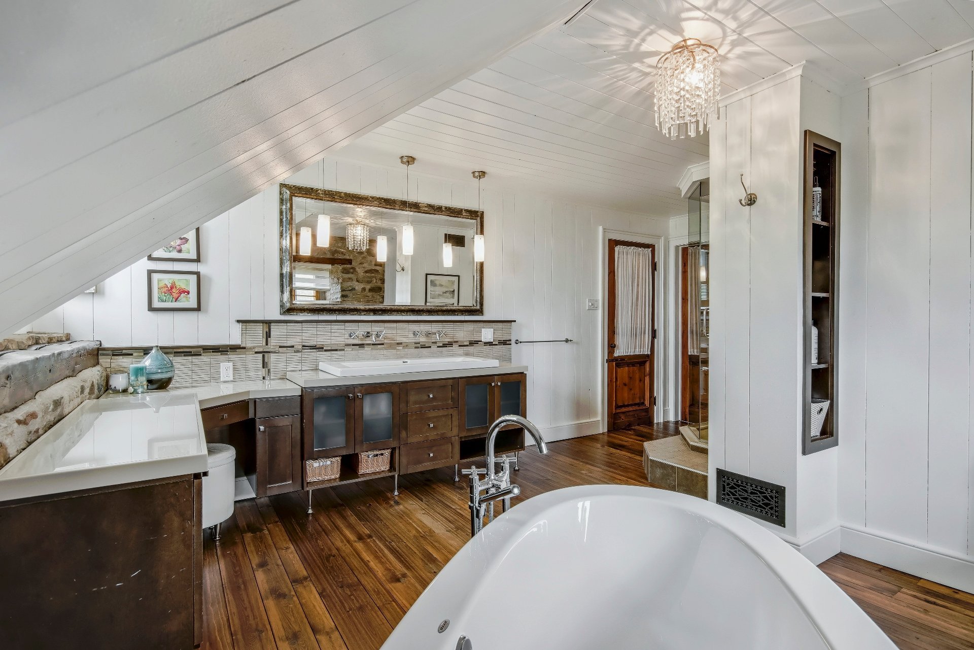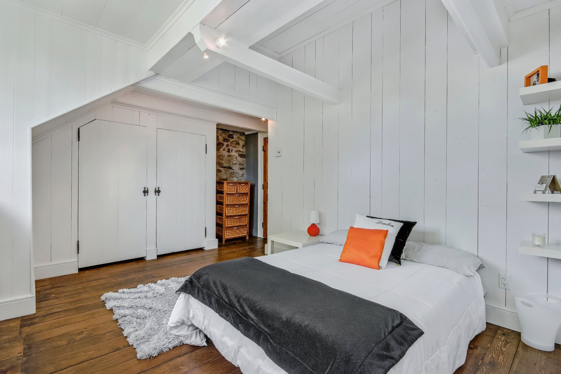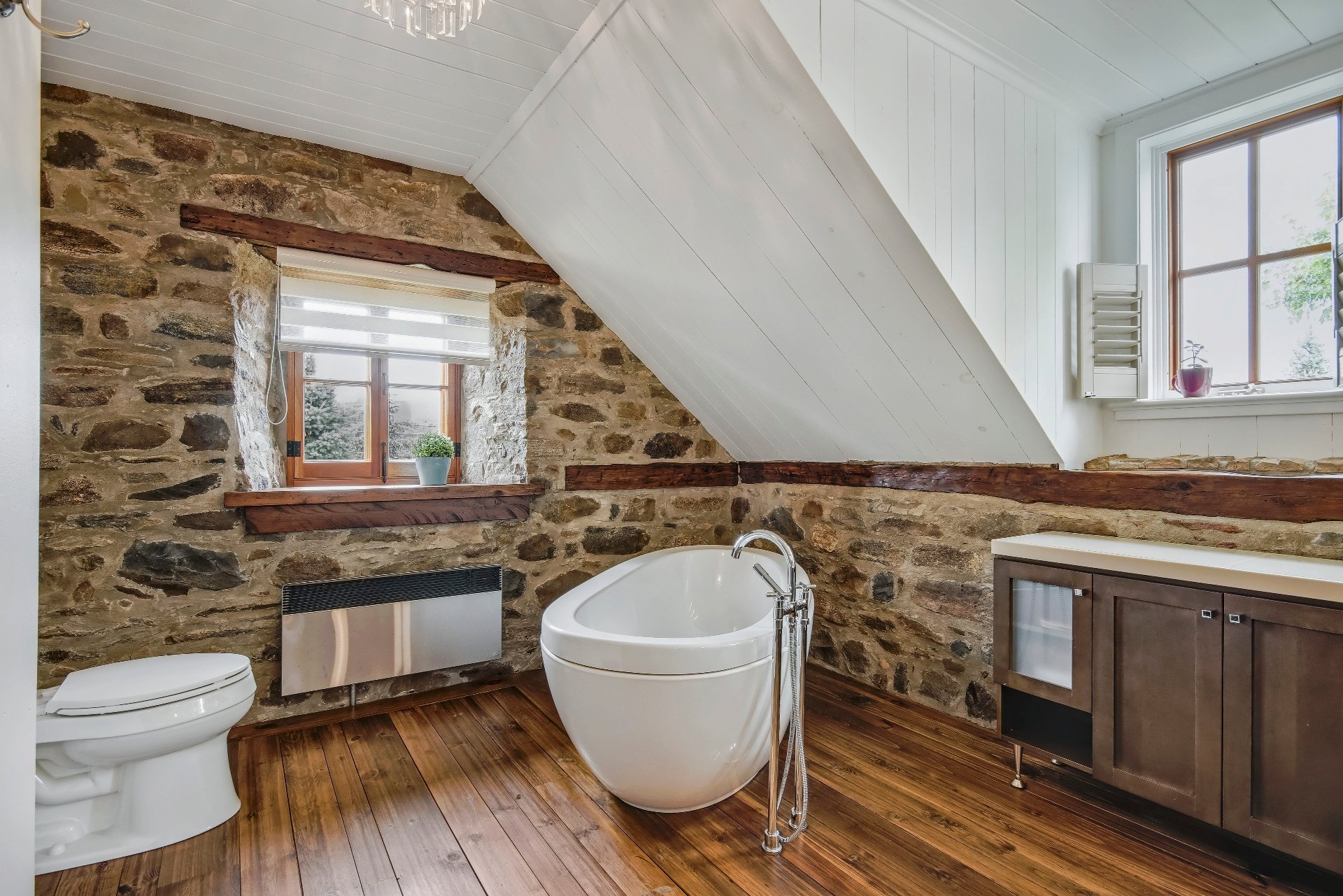 La cuisine, au design épuré, s'intègre avec élégance dans le décor ancien grâce à des touches de tradition : garde-corps ouvragés, luminaires en laiton patiné et comptoir en quartz posé au coeur d'un îlot accueillant. Chaque détail -- poignées, robinetterie, rangements discrets -- témoigne d'un souci d'esthétique et de fonctionnalité.