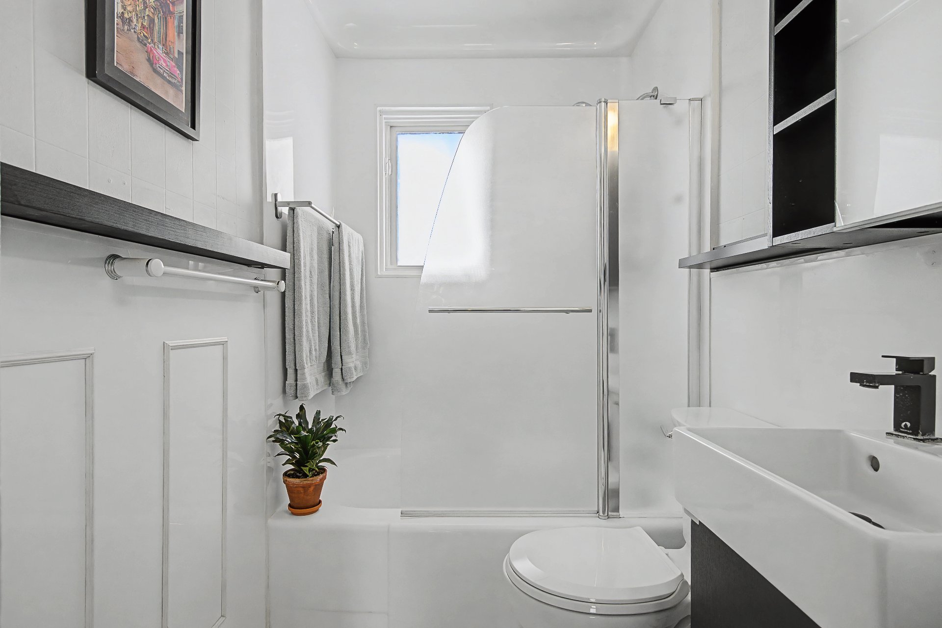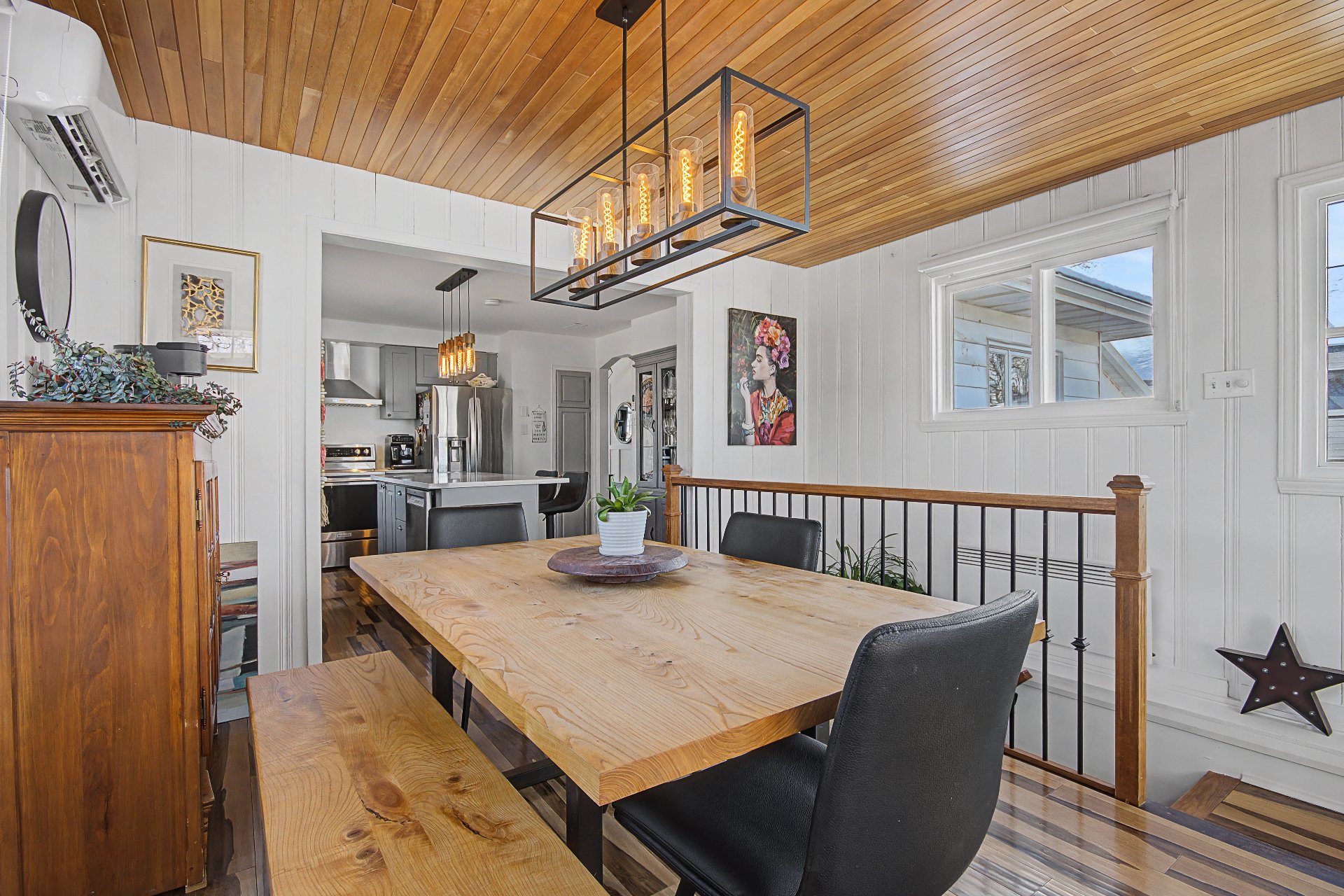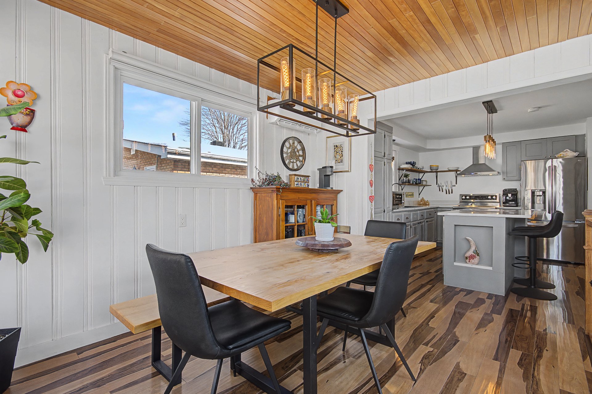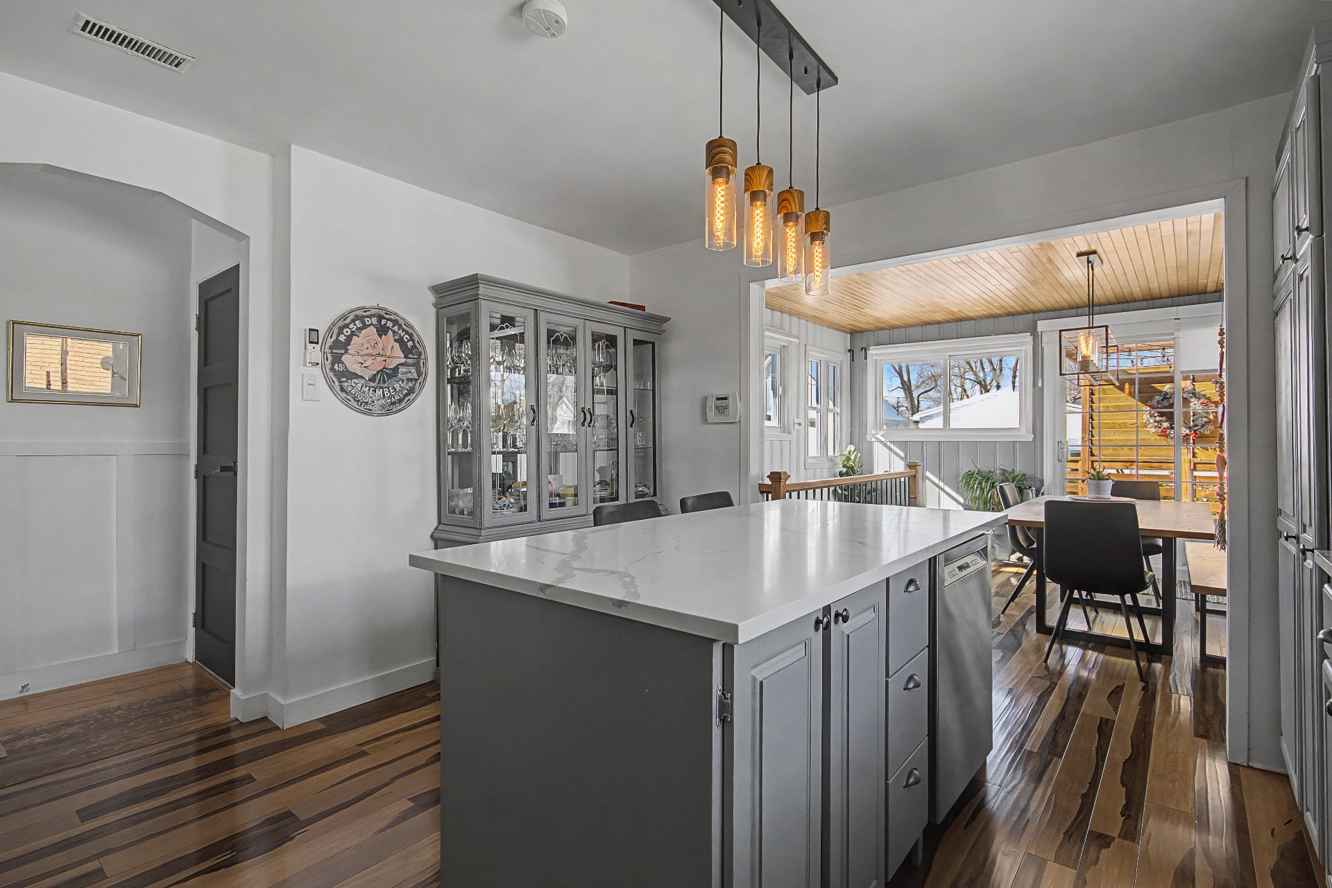 Lave-vaisselle, meubles de cuisine, tous les stores incluant les stores électriques (une garantie demeure en vigueur), tous les luminaires, hotte de poêle, balayeuse centrale, ainsi que le foyer électrique du salon.