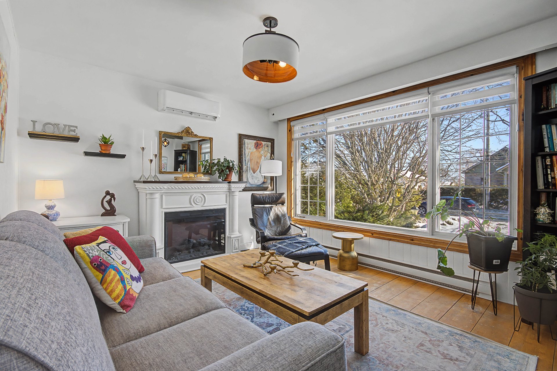 * Salon avec foyer électrique