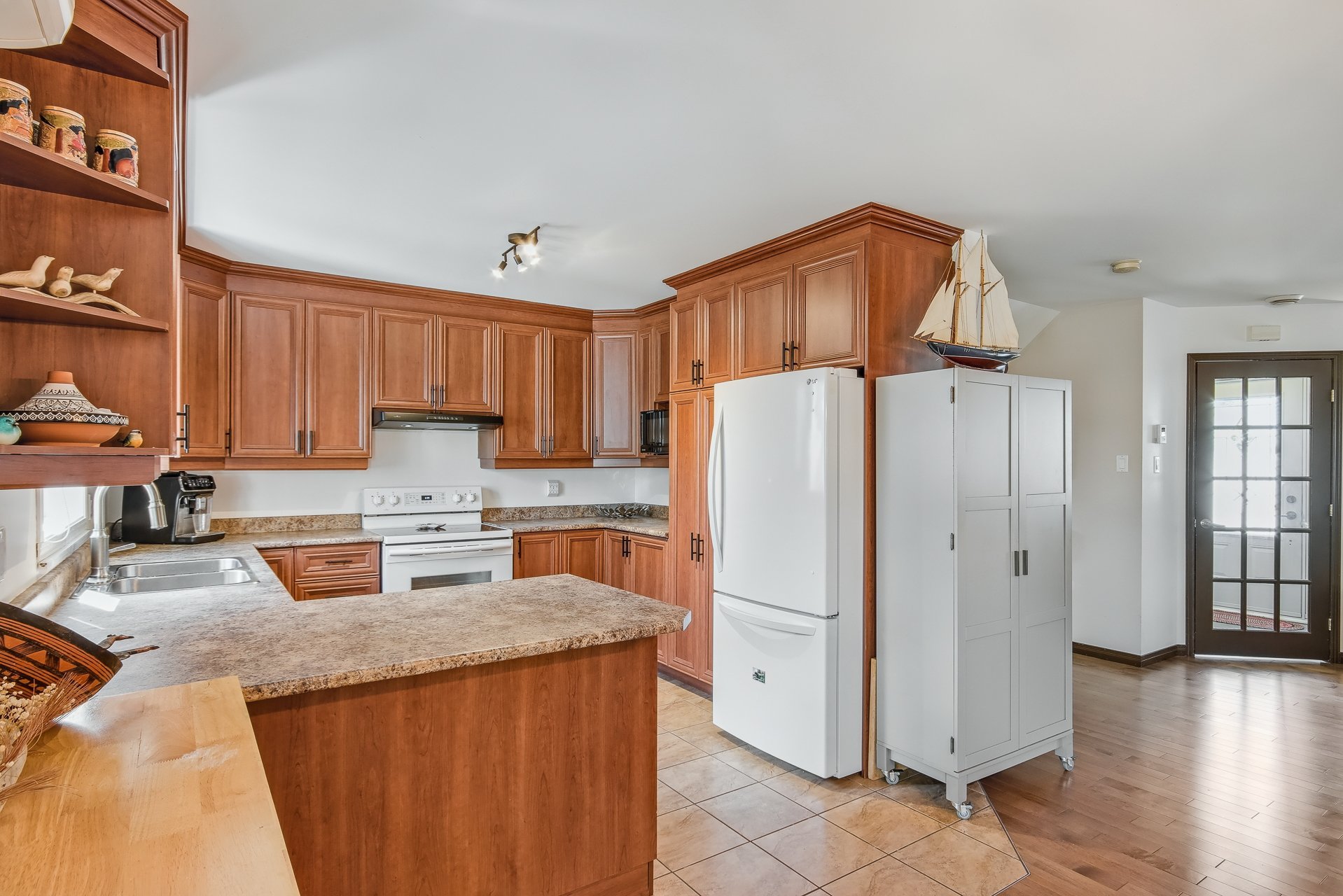 Le rez-de-chaussée propose une aire ouverte baignée de lumière naturelle, idéale pour la vie de tous les jours comme pour recevoir. À l'extérieur, profitez d'une vaste cour arrière aménagée, intime et verdoyante, avec plusieurs arbres fruitiers et arbustes soigneusement plantés. Le balcon arrière, le pavé uni et l'aménagement paysager complètent cet espace de détente parfait.