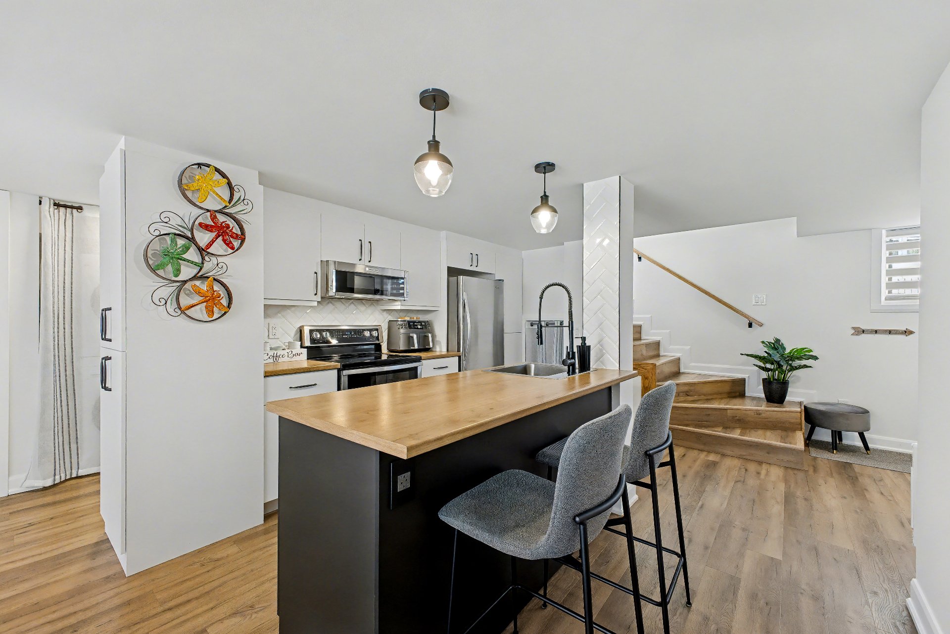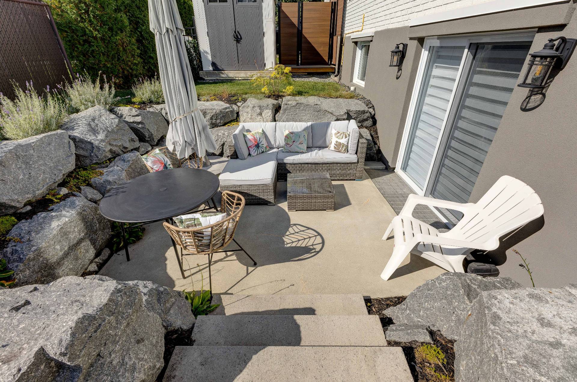 La section intergénérationnelle, entièrement indépendante, dispose de deux chambres, d'une aire ouverte combinant salon, salle à manger et cuisine ainsi qu'une porte-patio donnant sur une terrasse privée. Loué meublé, ce logement se distingue par son confort, sa luminosité et son caractère chaleureux.