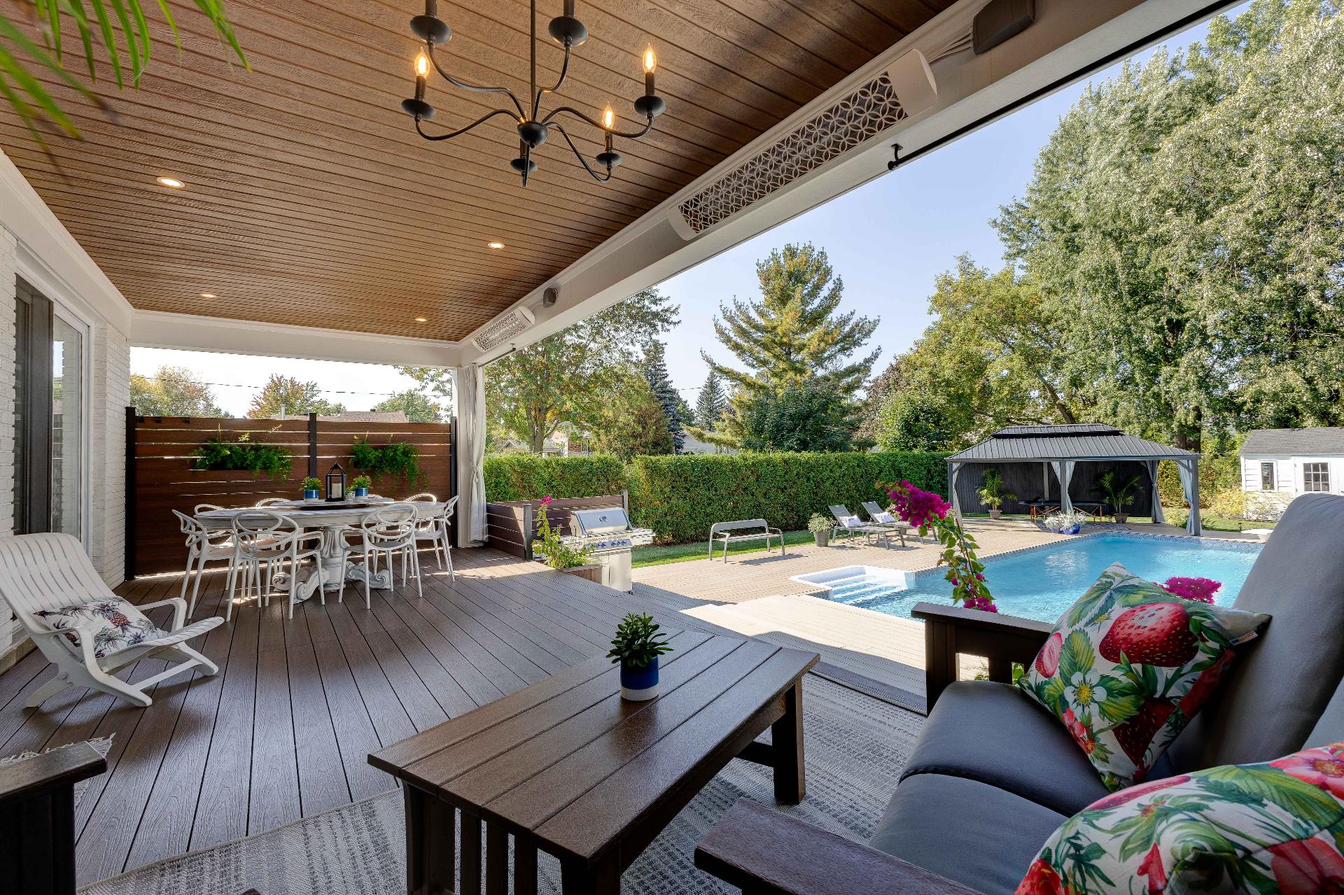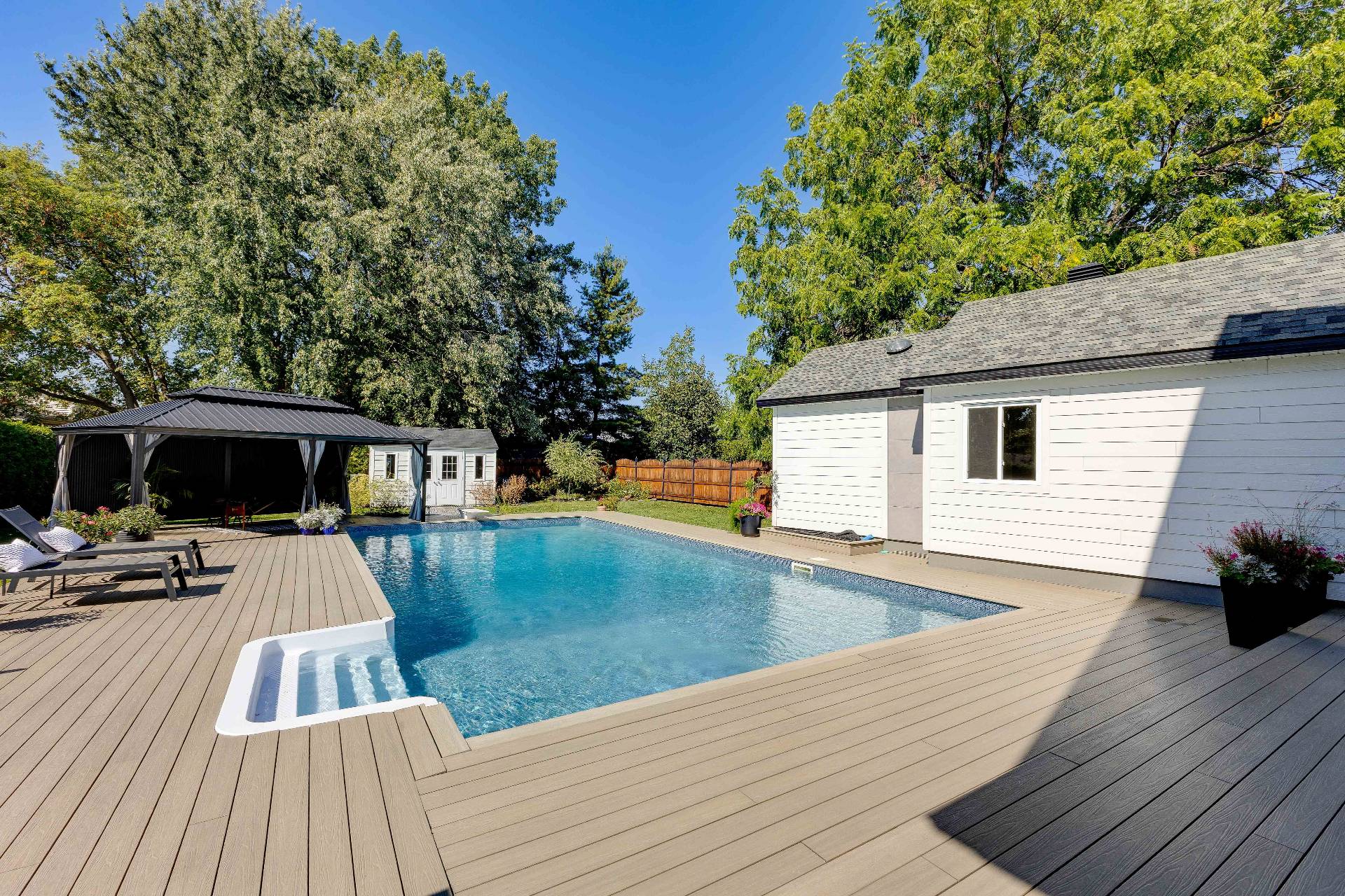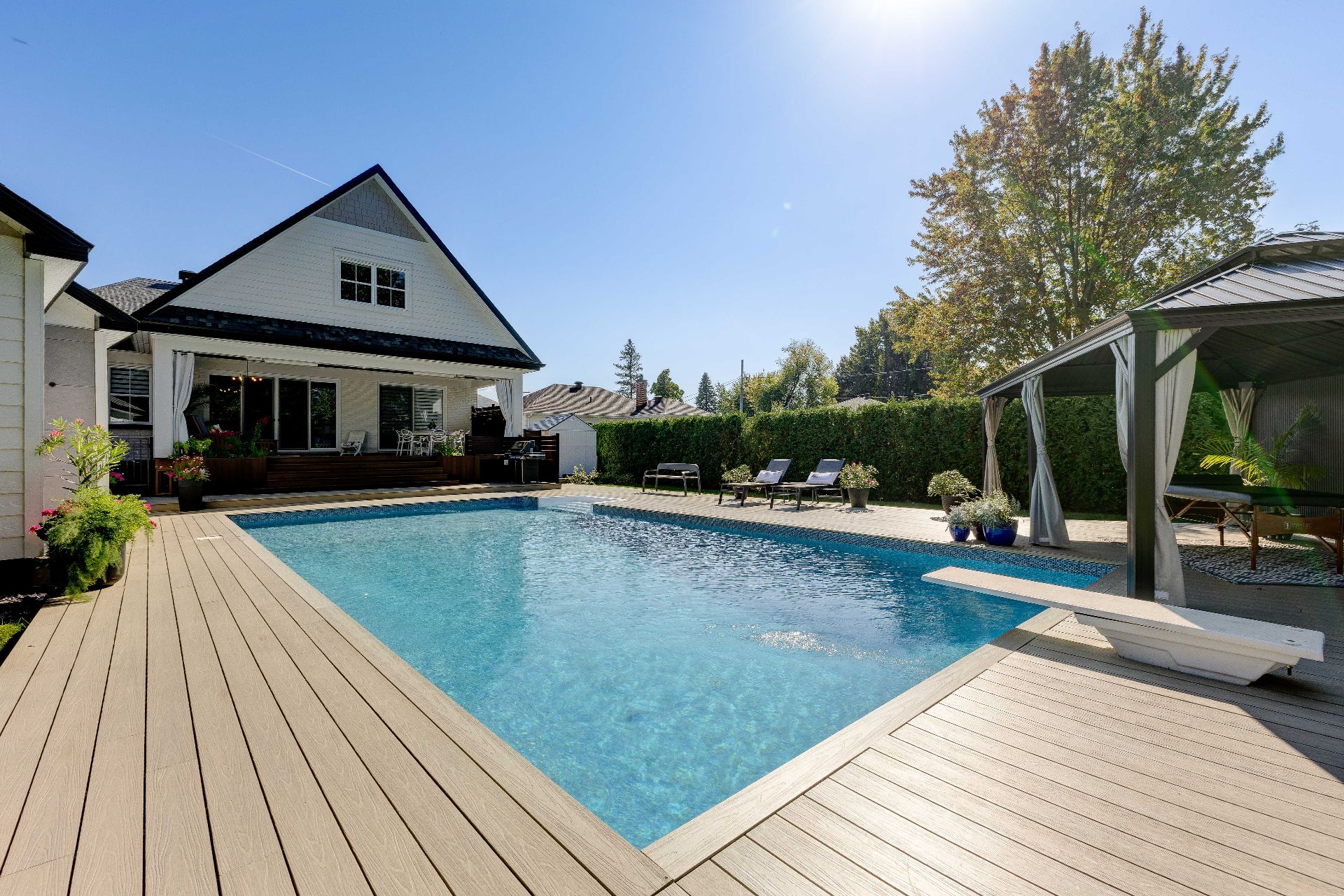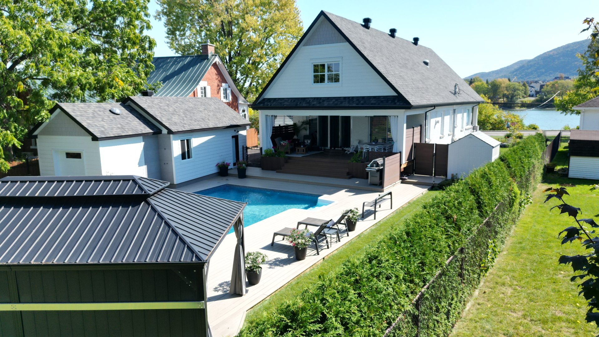 La cour arrière, soigneusement aménagée, constitue un véritable sanctuaire : vaste terrasse en composite avec chauffe-terrasse intégré, très grande piscine creusée chauffée mesurant 20p X 40p, garage détaché et coin lounge invitant à la détente. Immense stationnement pouvant accueillir jusqu'à 7 véhicules, avec une configuration permettant de sortir une voiture sans avoir à en déplacer une autre. En bordure du Richelieu, un quai privé permet de profiter pleinement des activités nautiques et d'admirer le lever de soleil sur le Mont Saint-Hilaire.