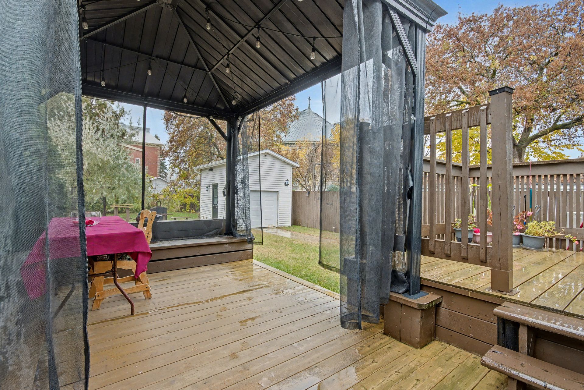 Tous les stores, lave-vaisselle, hotte, gazebo et moustiquaire, caméras de surveillance, cabanon, bar à la cuisine, 2 tabourets de bar, 2 tabourets de cuisine, tous les luminaires, la petite table extérieur avant et les 2 chaises, le meuble de télévision blanc au salon du RDC, pôles et rideaux.
