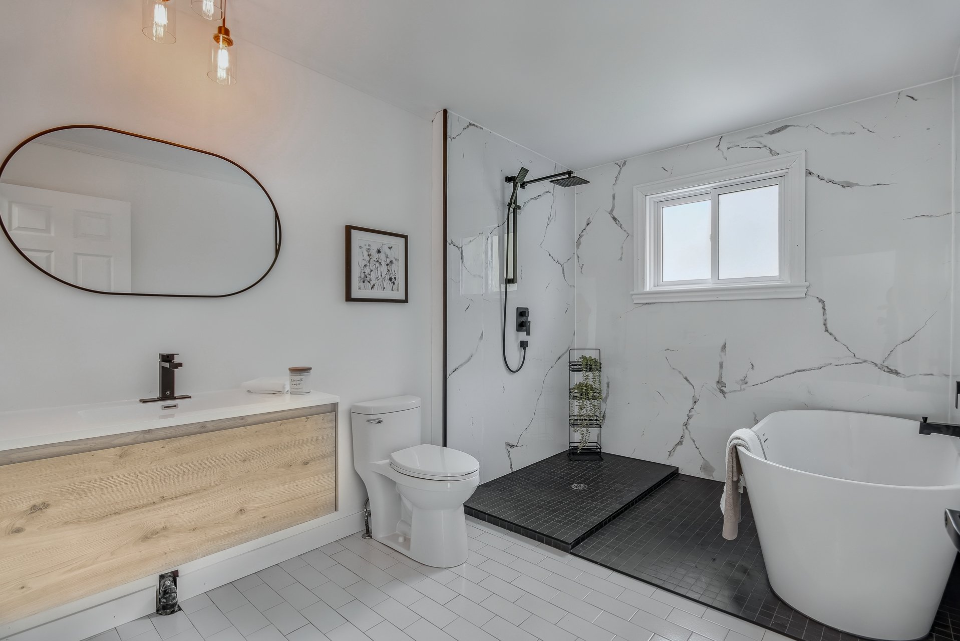 *Réfection de la salle de bain du sous-sol : Douche, plancher, peinture, stores, portes garde-robe.
