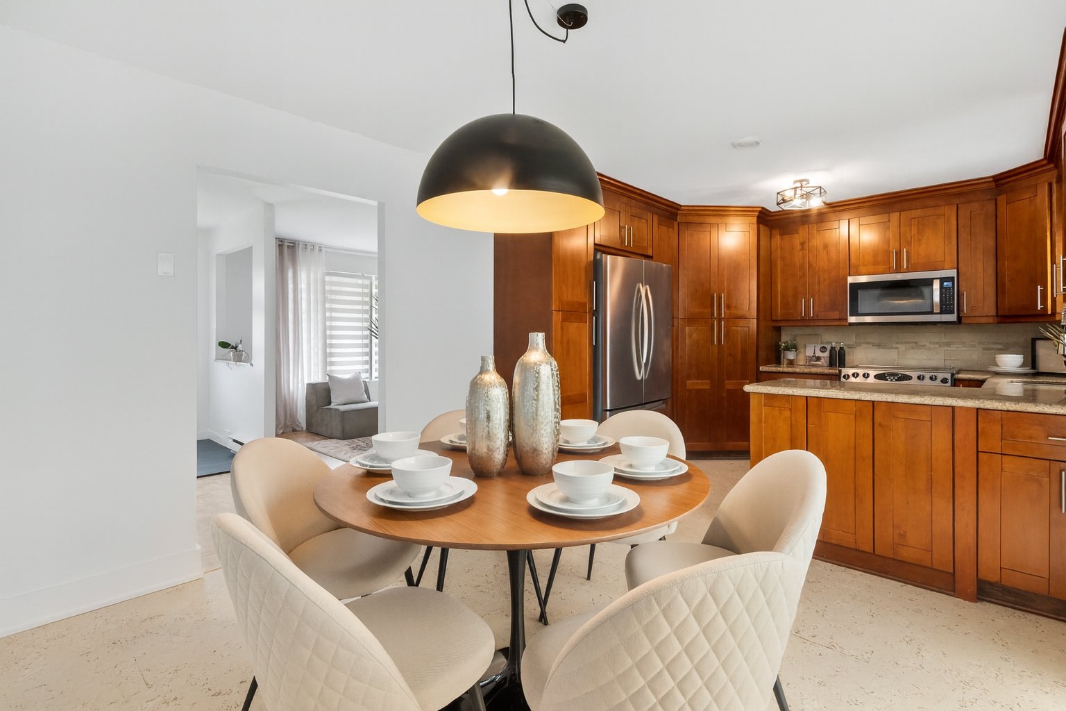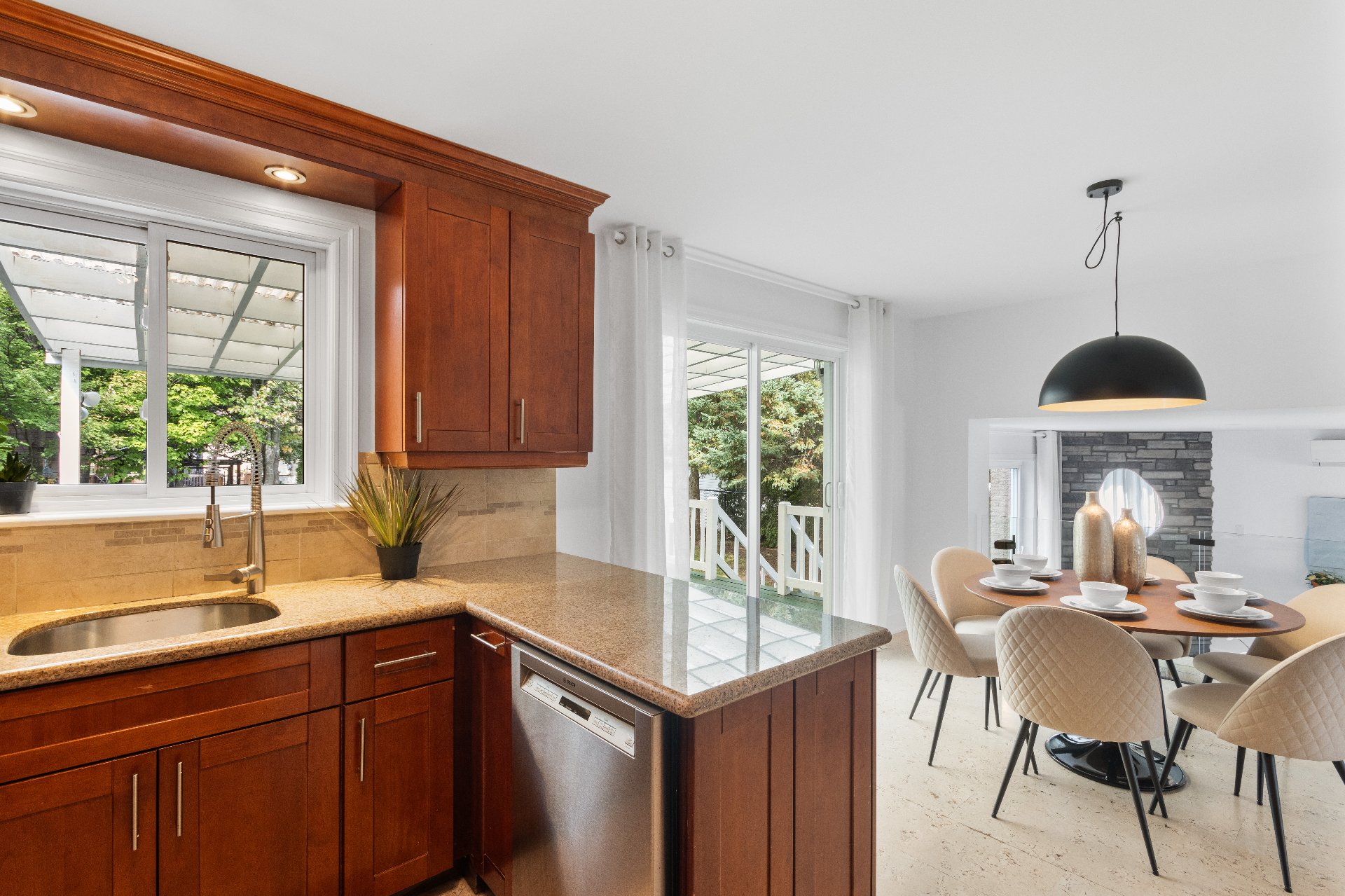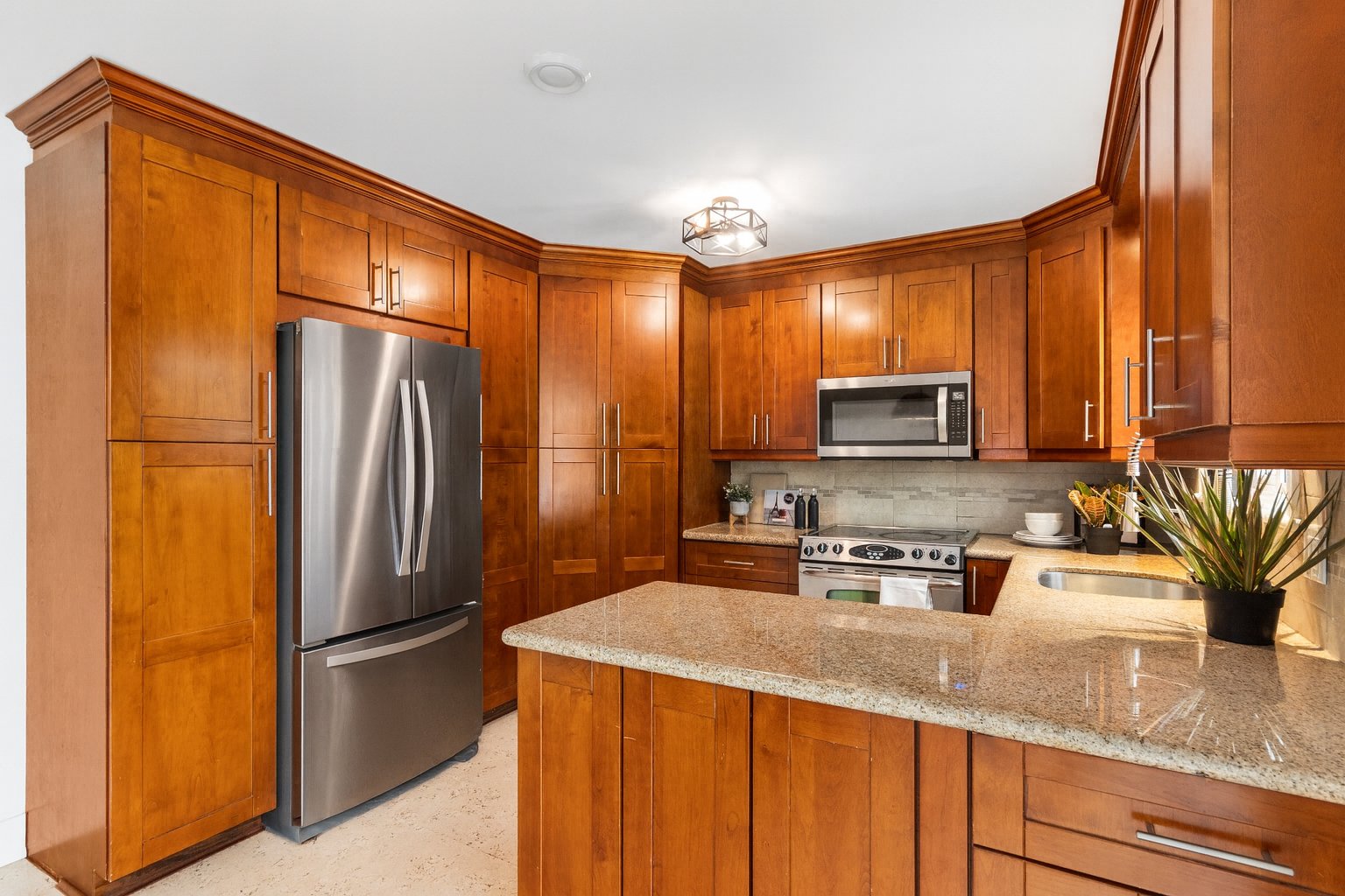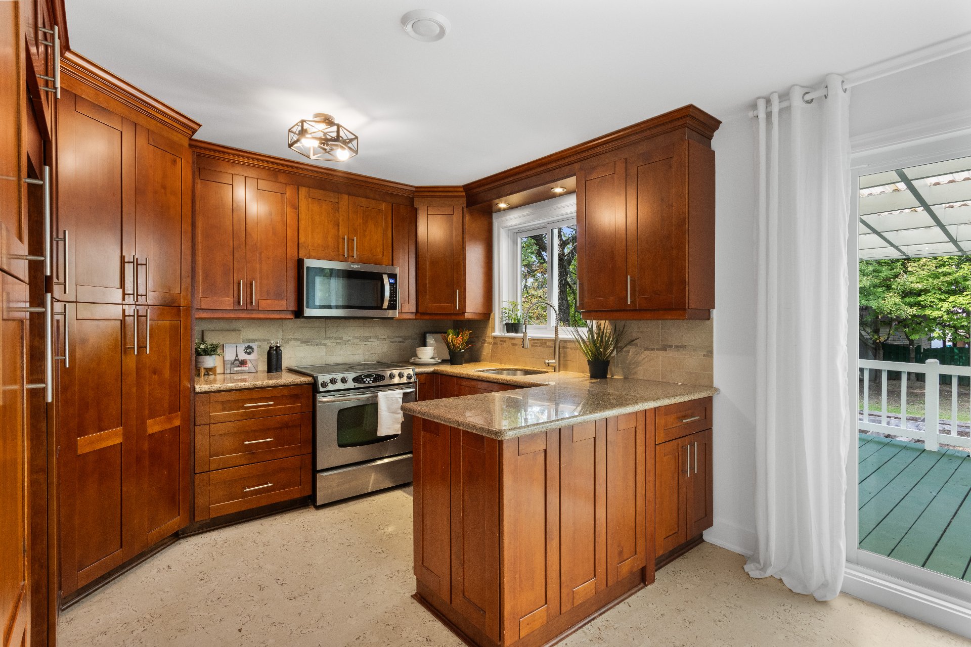 | Cuisine | 1er niveau/RDC | 8.6x11.4 P | Autre | Armoire de bois + granite |