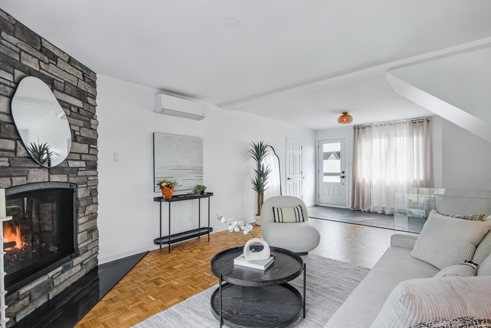 Luminaires, stores et pôles. Les 2 thermopompes murales et 2 manettes, l'aspirateur central et accessoires, hotte micro-ondes, cuisinière électrique, chauffe-eau 60 gallons, foyer au gaz.