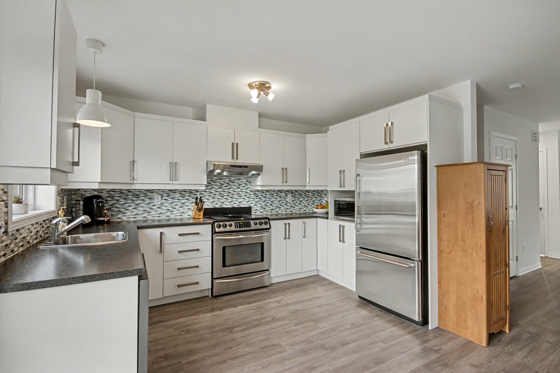 | Cuisine | 1er niveau/RDC | 9.7x12.9 P | Plancher flottant | |