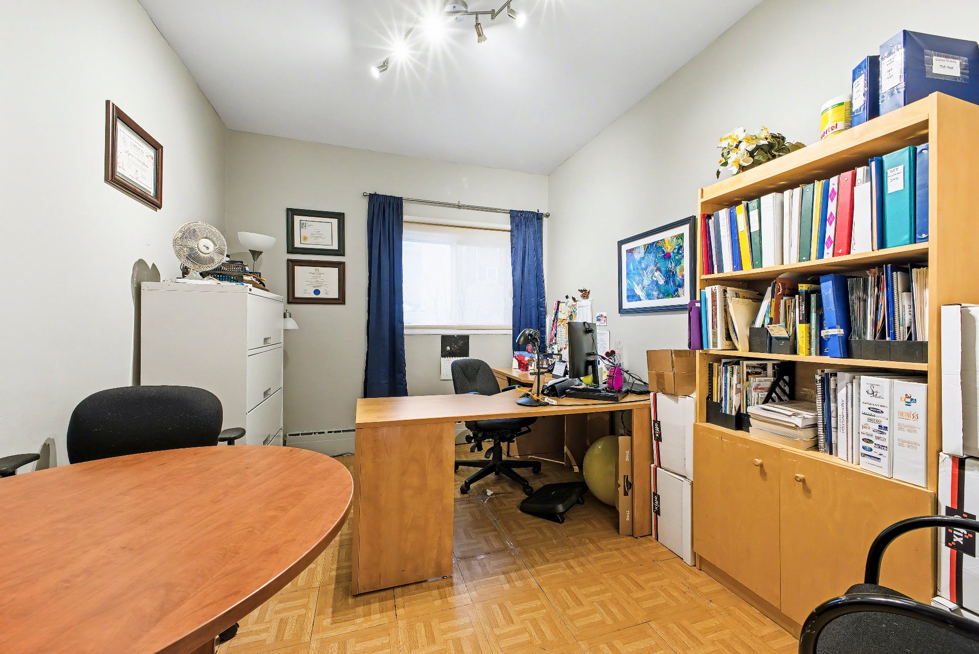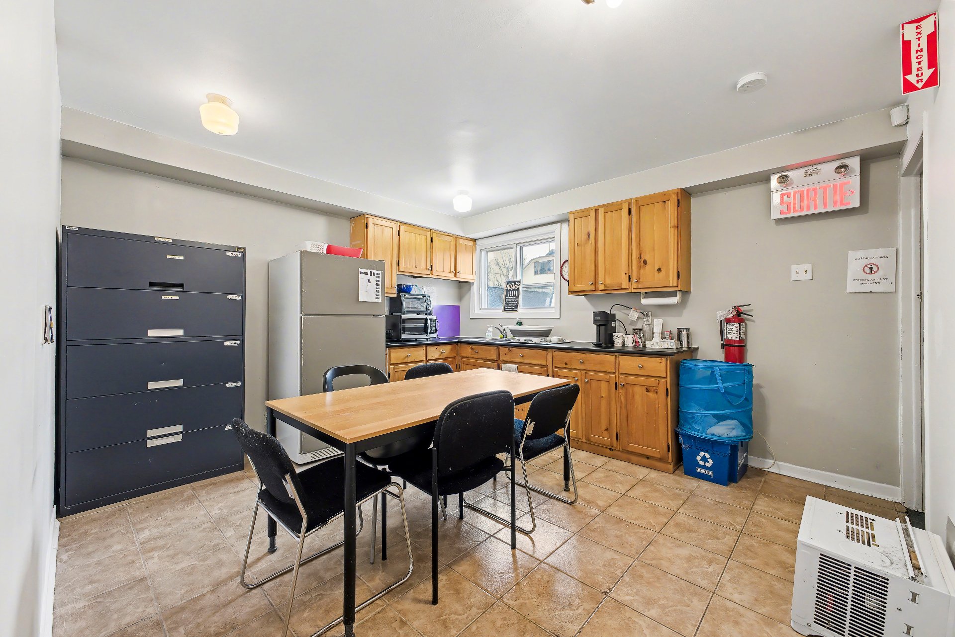 Cet immeuble se distingue par sa grande polyvalence et son aménagement fonctionnel, offrant un bureau à l'entrée, plusieurs bureaux au rez-de-chaussée, deux vastes salles polyvalentes au sous-sol, une cuisinette et de nombreux espaces de rangement. Plusieurs espaces de stationnement complètent l'ensemble.
