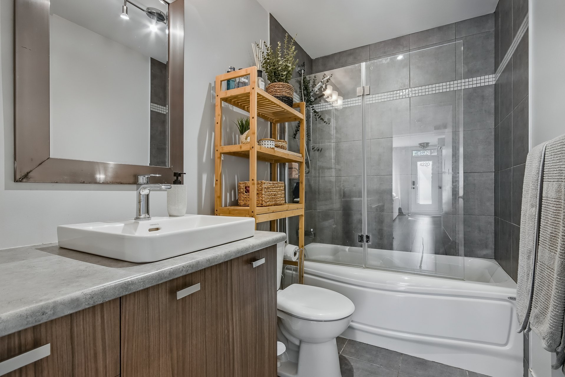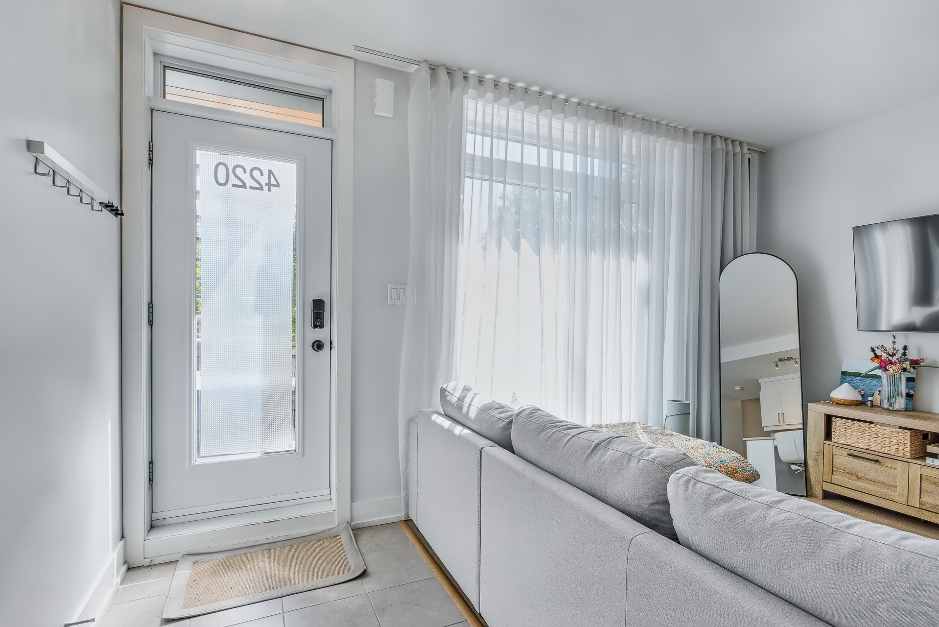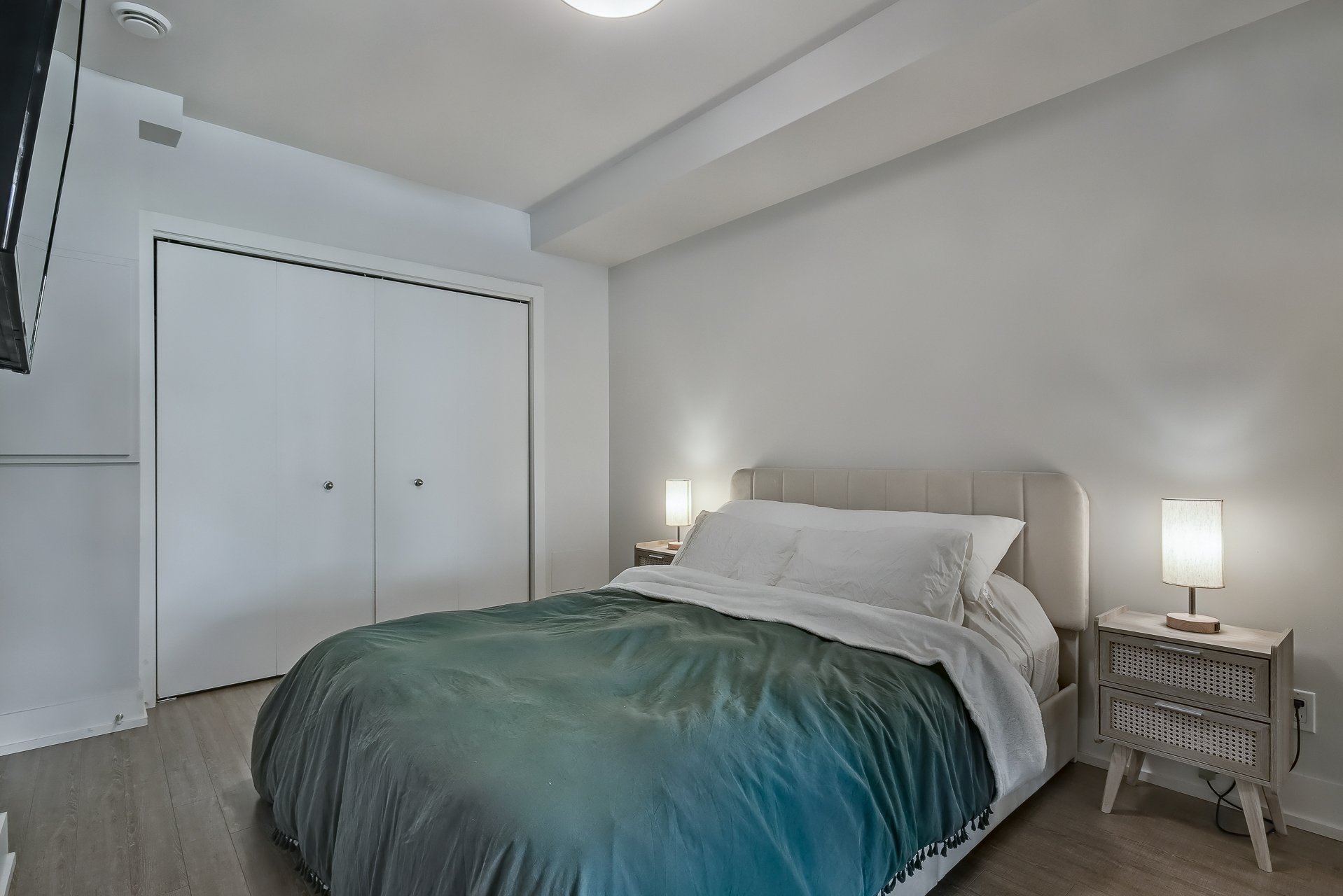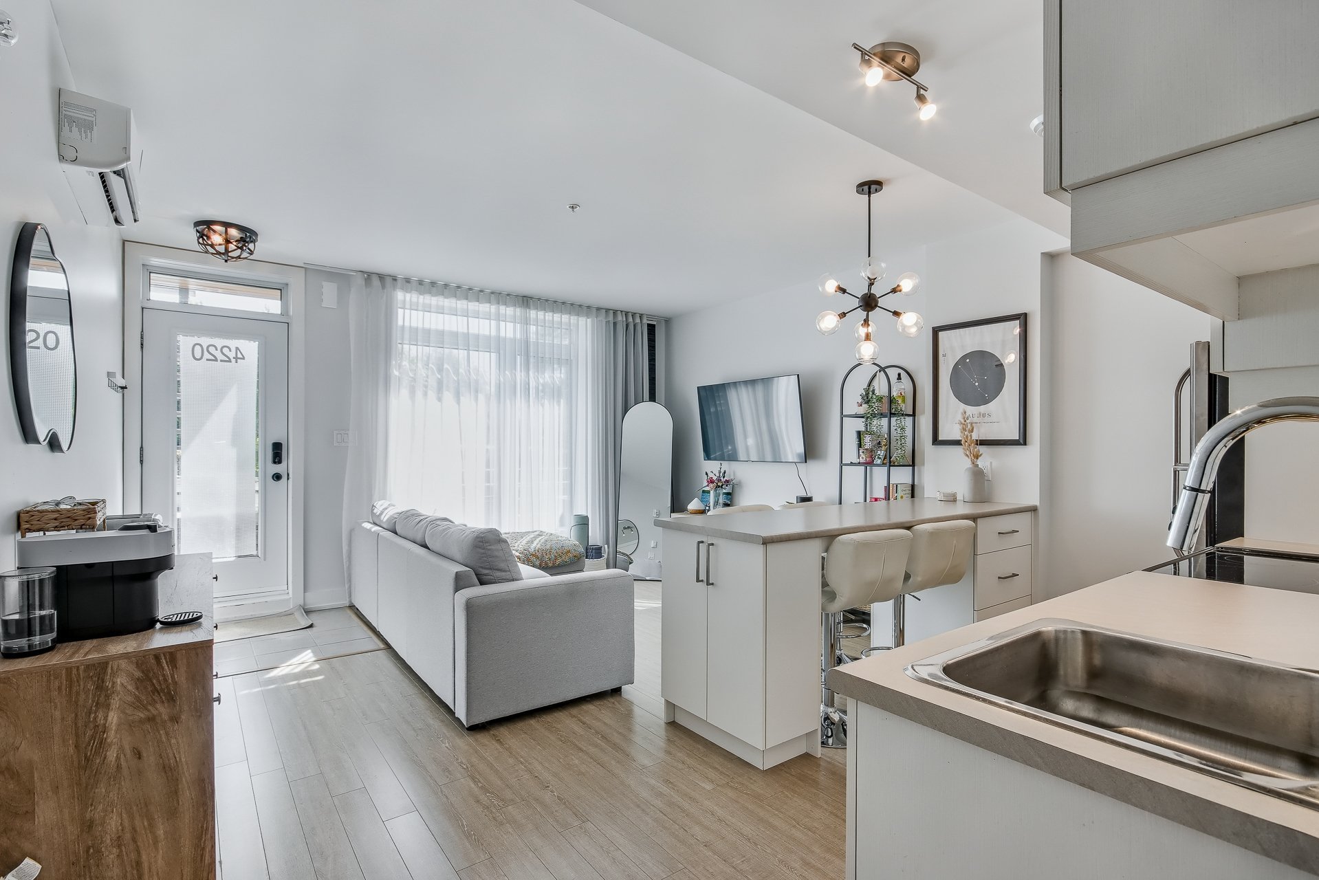 Luminaires, pôles, rideaux (sauf ceux de la chambre), lave-vaisselle, cuisinière, réfrigérateur, laveuse/sécheuse intégrée tout en un, micro-ondes à hotte intégrée, climatiseur mural et sa manette, échangeur d'air, porte serviettes salle de bain, rangement sur mesure du garde-robe de la chambre, miroir de la salle de bain.