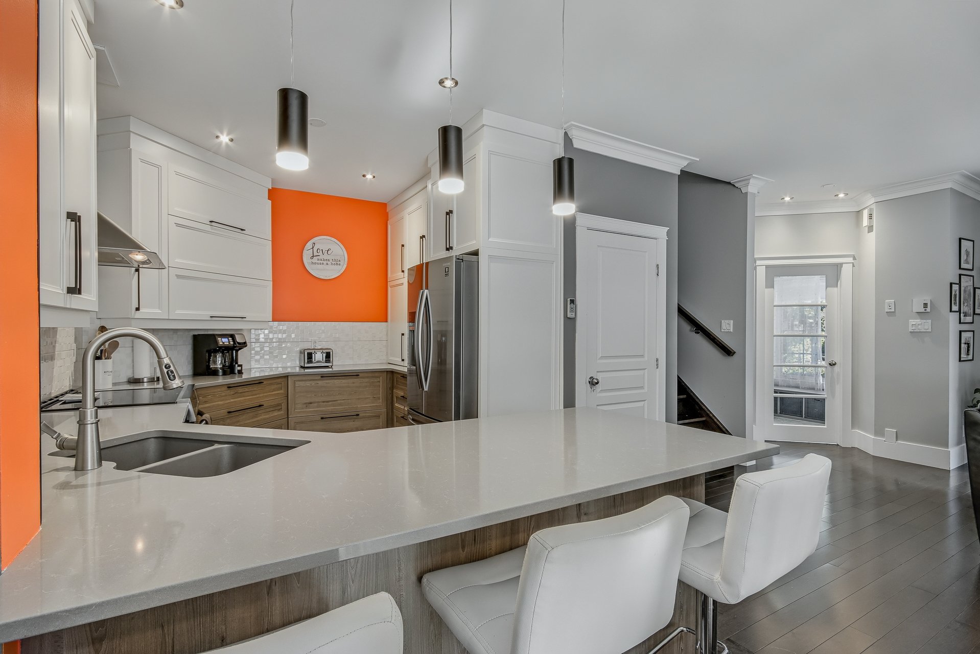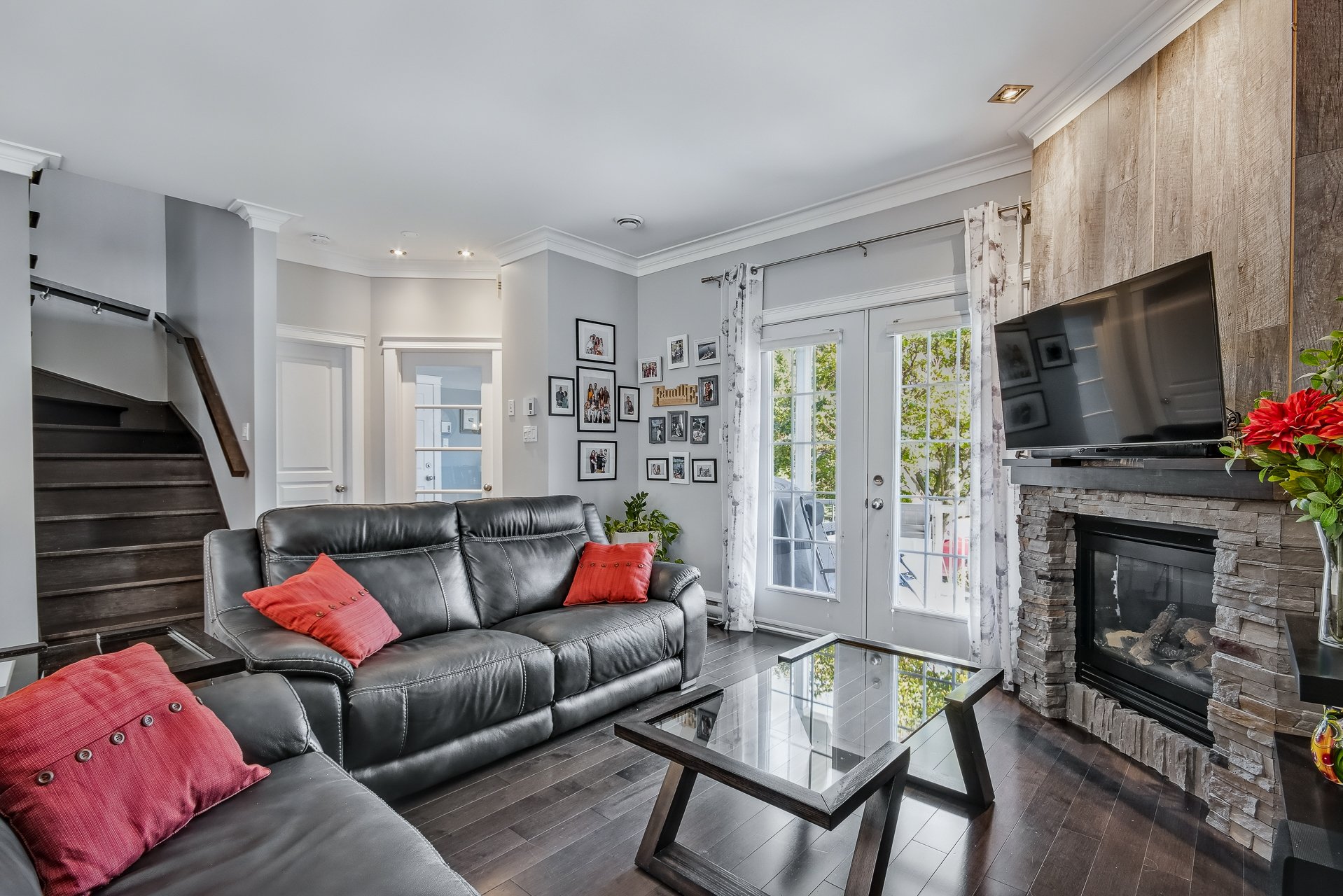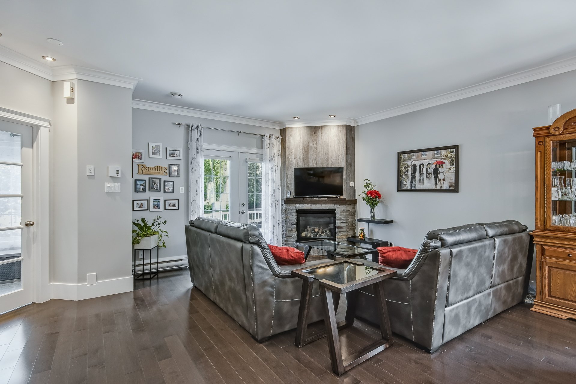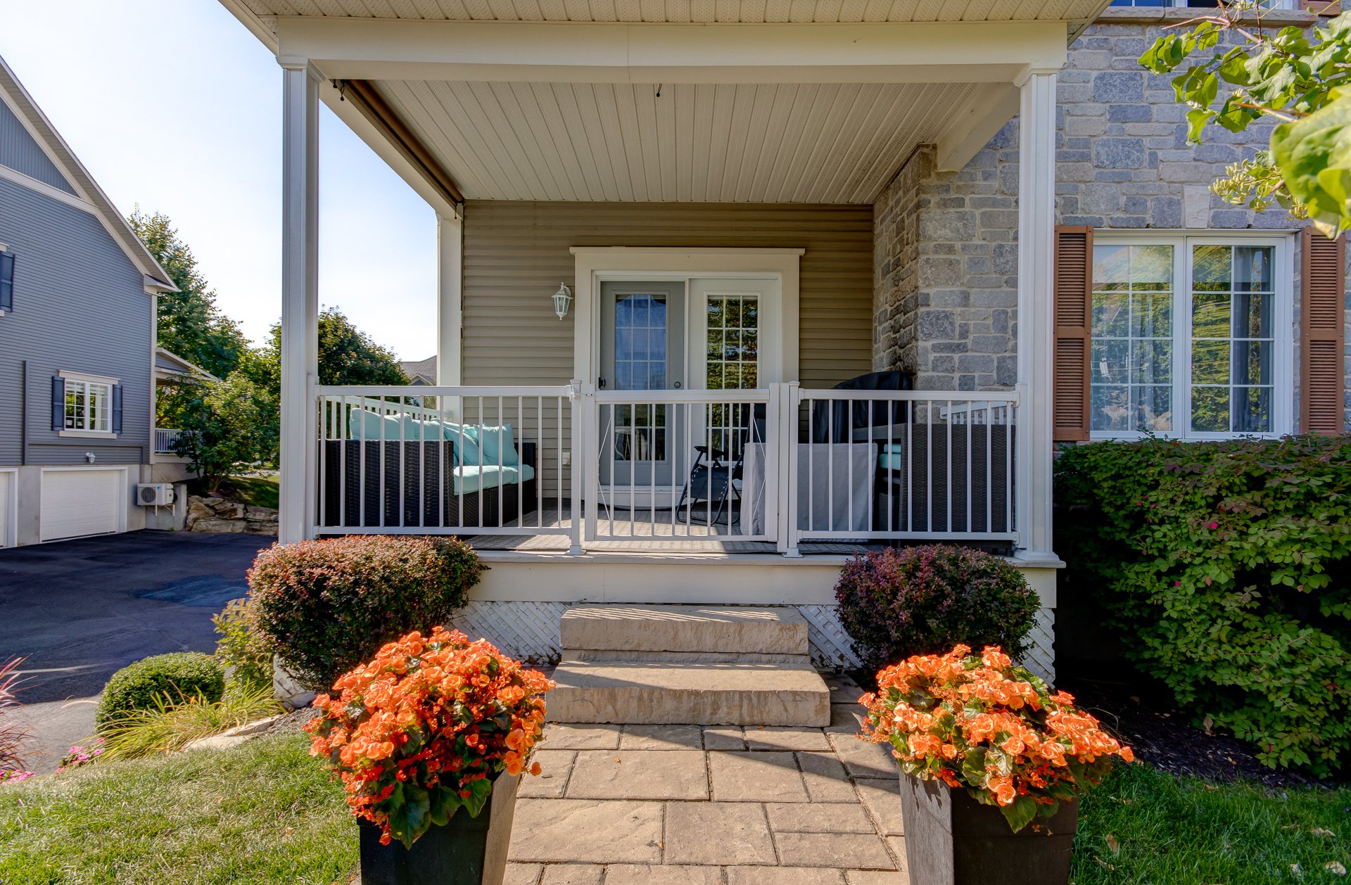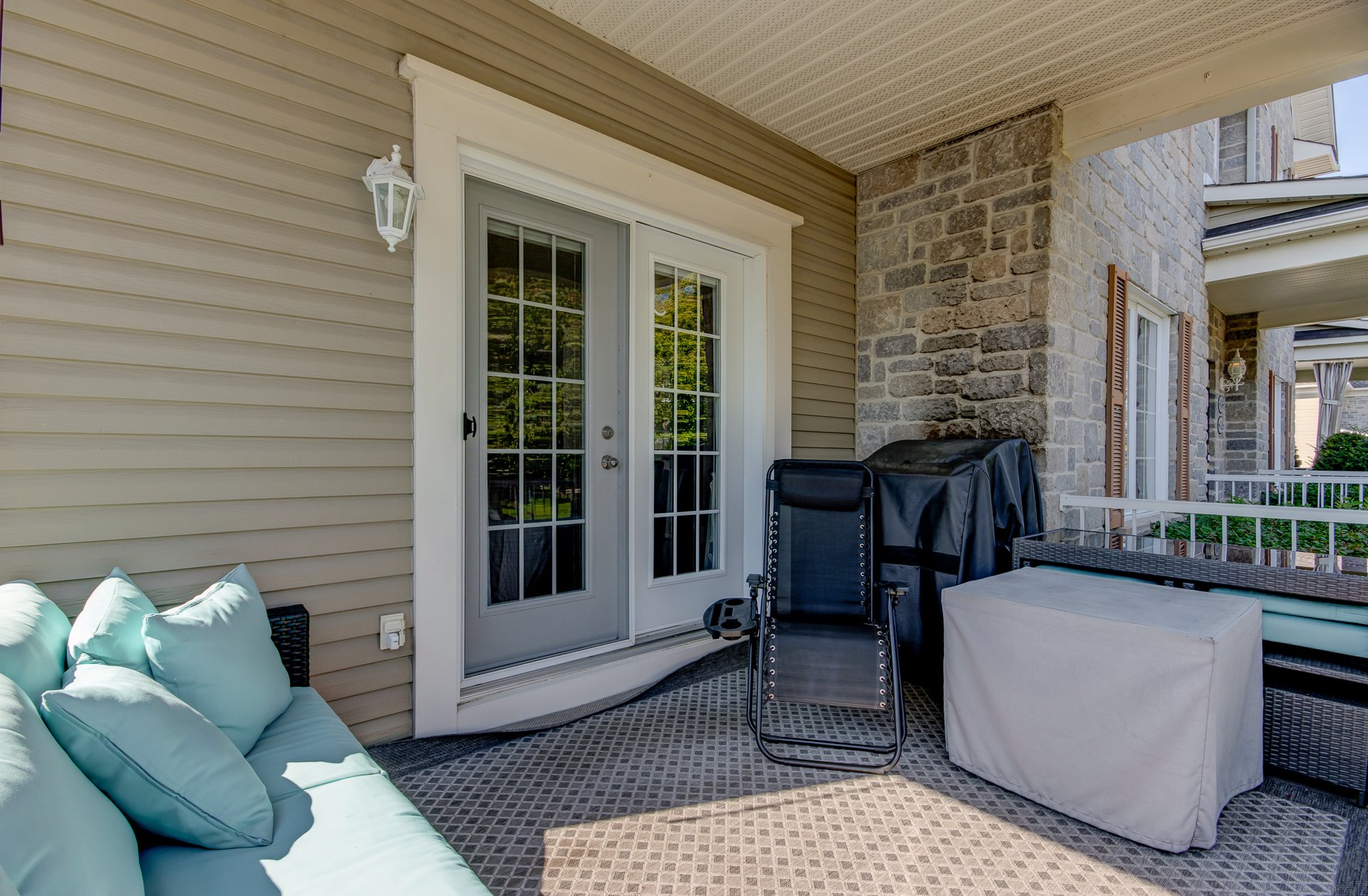 Stores, rideaux, pôles, télévision salon, balayeuse centrale avec les accessoires, armoire dans salle de lavage, tablette en grillage dans les garde-robes, lave-vaisselle, 2X moteurs porte garage, stores extérieurs, BBQ au gaz naturel.