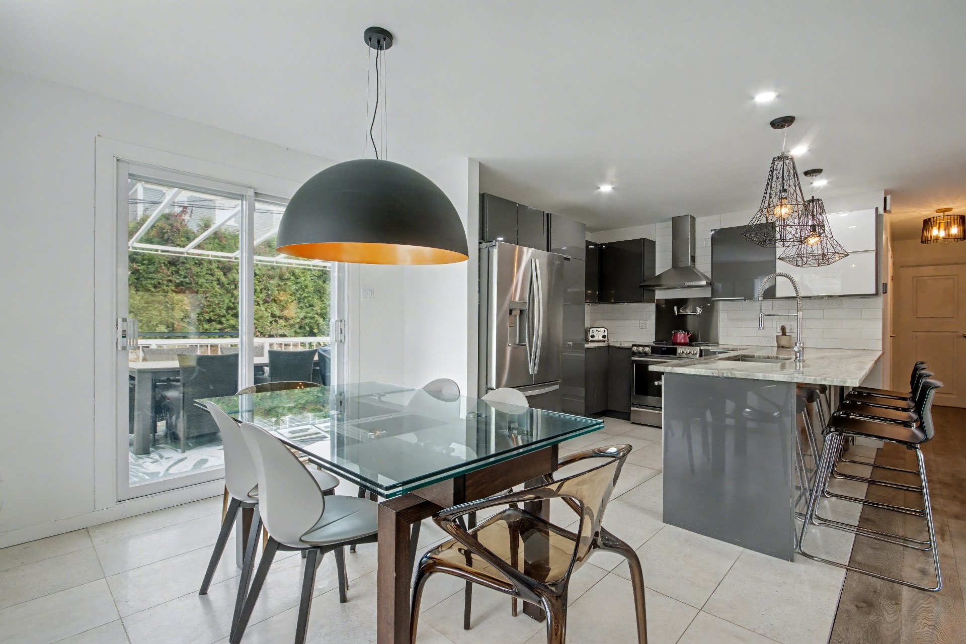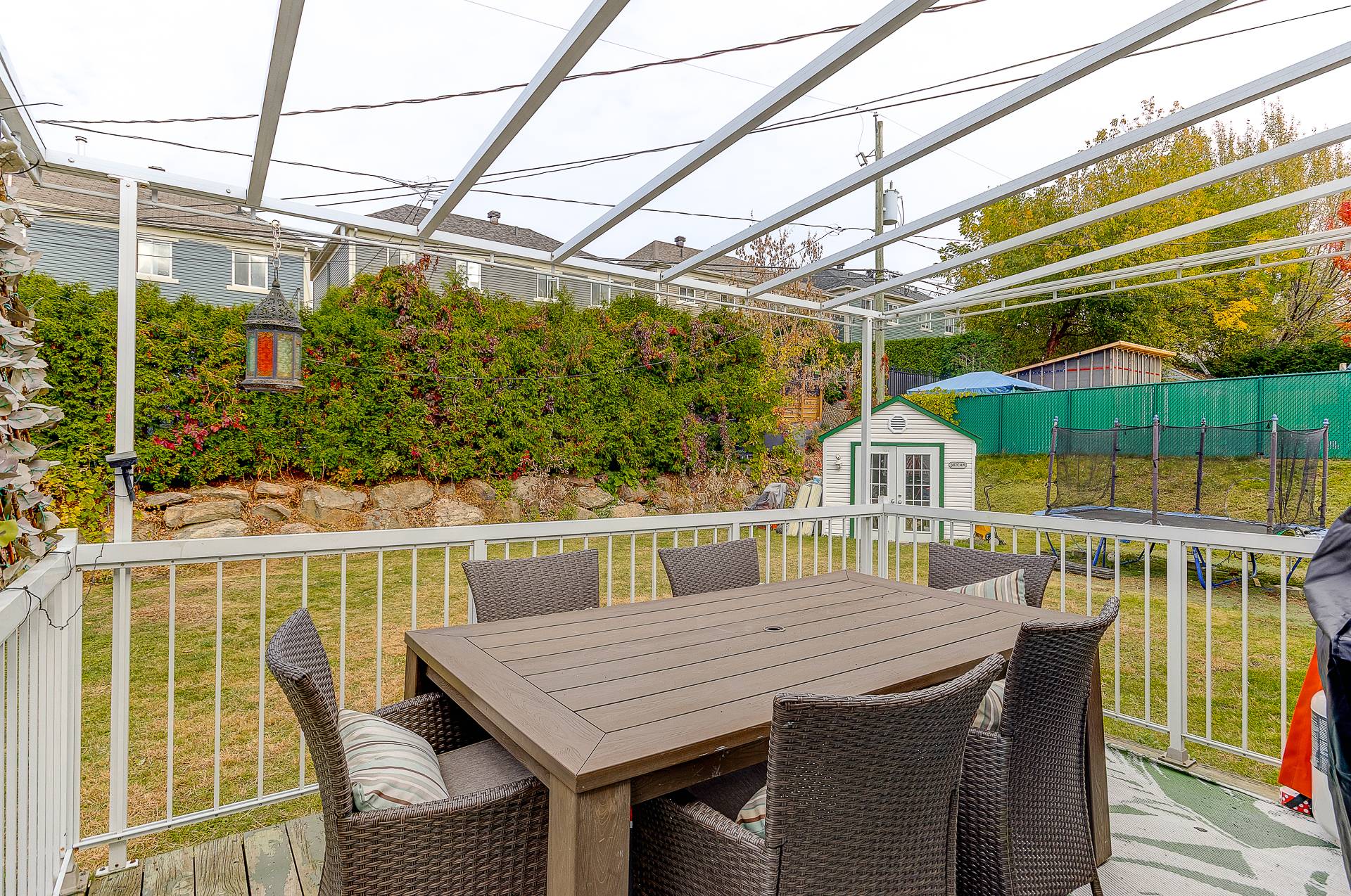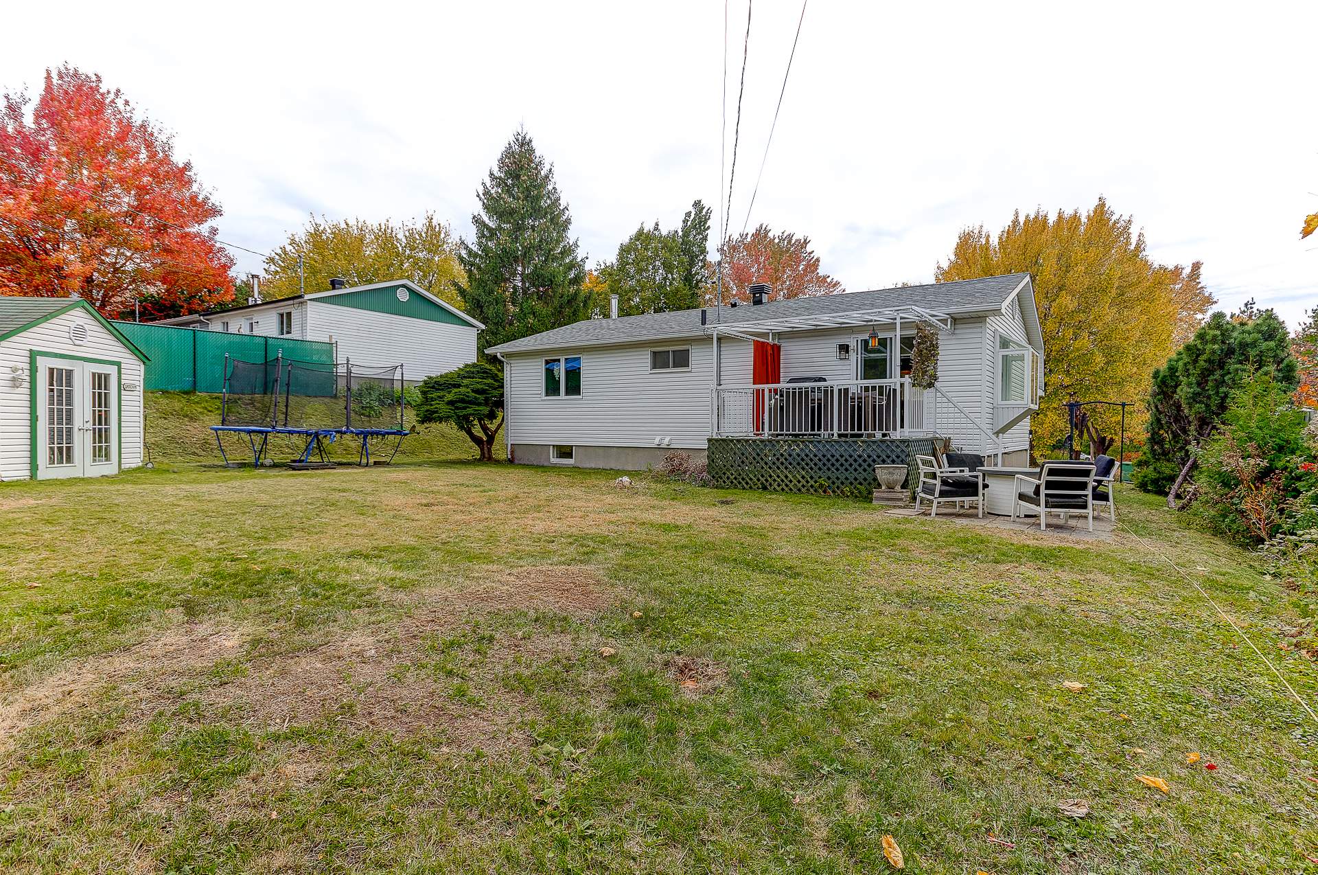 Tous les luminaires, pôles, rideaux, hotte, cellier (non fonctionnel), foyer électrique au salon du RDC, cabanon, module de rangement à la salle à manger, structure gazebo (sans la toile), tous les supports de télévision (x3), tous les miroirs des salles de bain, les modules de rangement du walk-in au sous-sol, bois de chauffage restant, borne voiture électrique, aspirateur central + prise d'aspiration automatique à la cuisine (miettes).