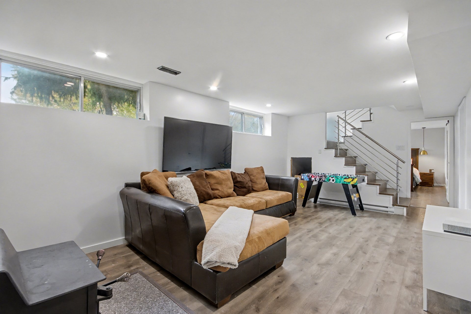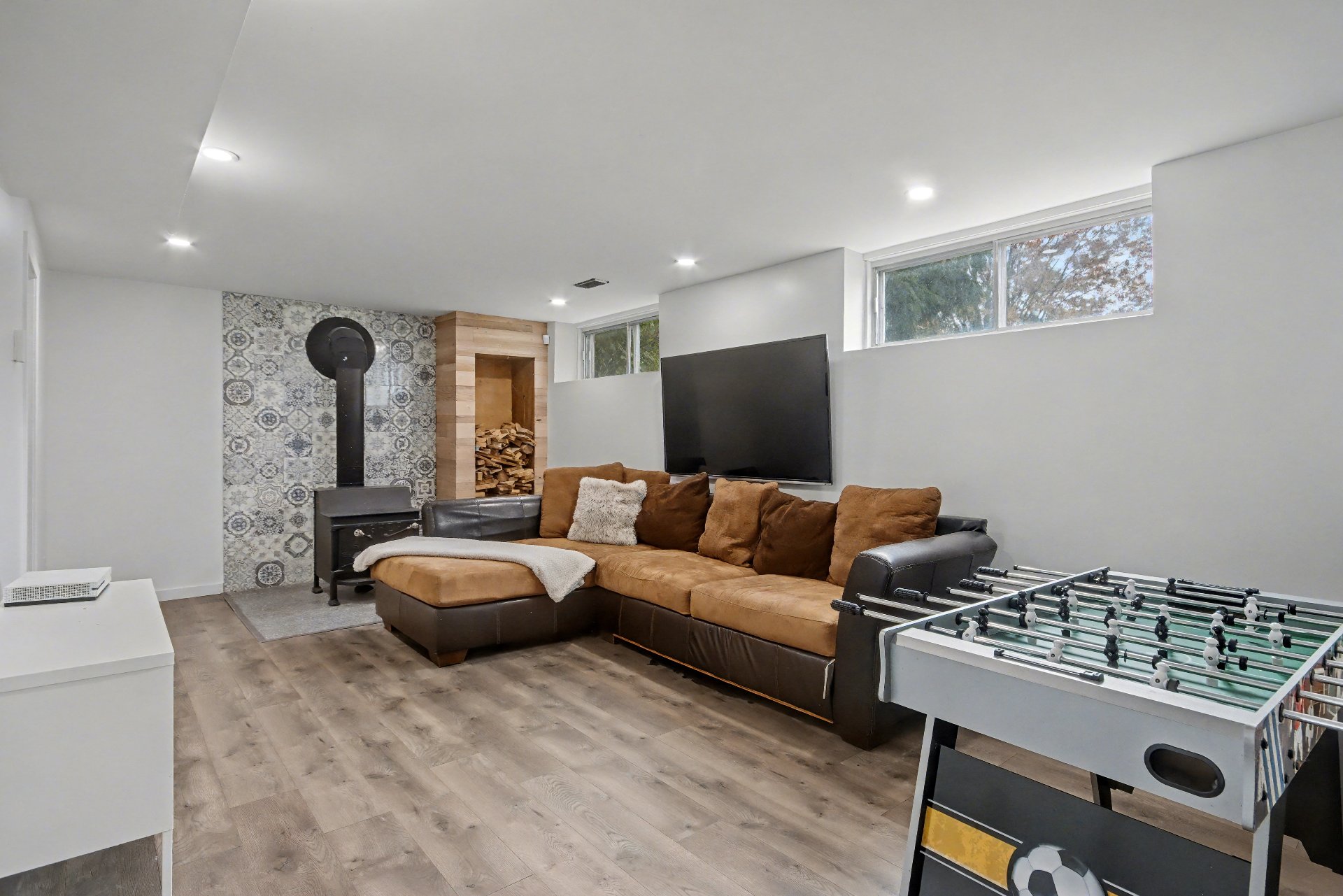 | Salle familiale | Sous-sol | 23.5x11.3 P | Plancher flottant | Poêle au bois |