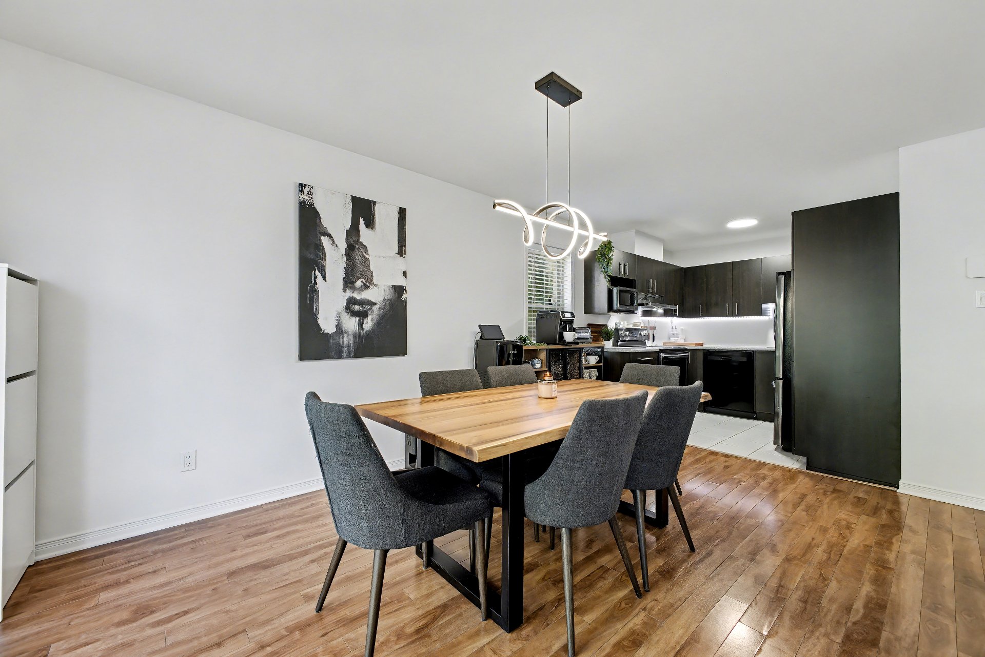 | Salle à manger | 1er niveau/RDC | 15.3x9.3 P | Plancher flottant | Porte-patio double |