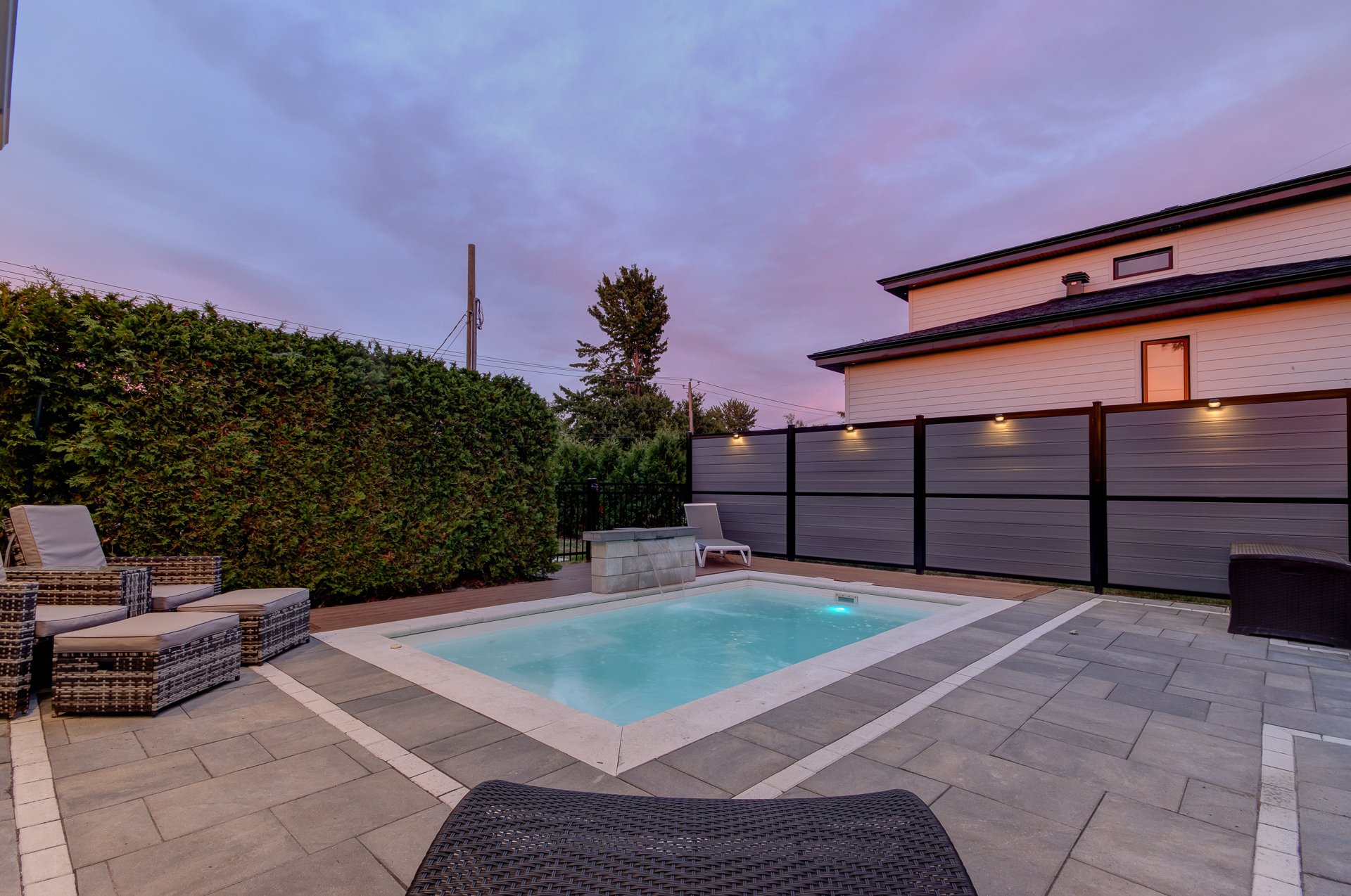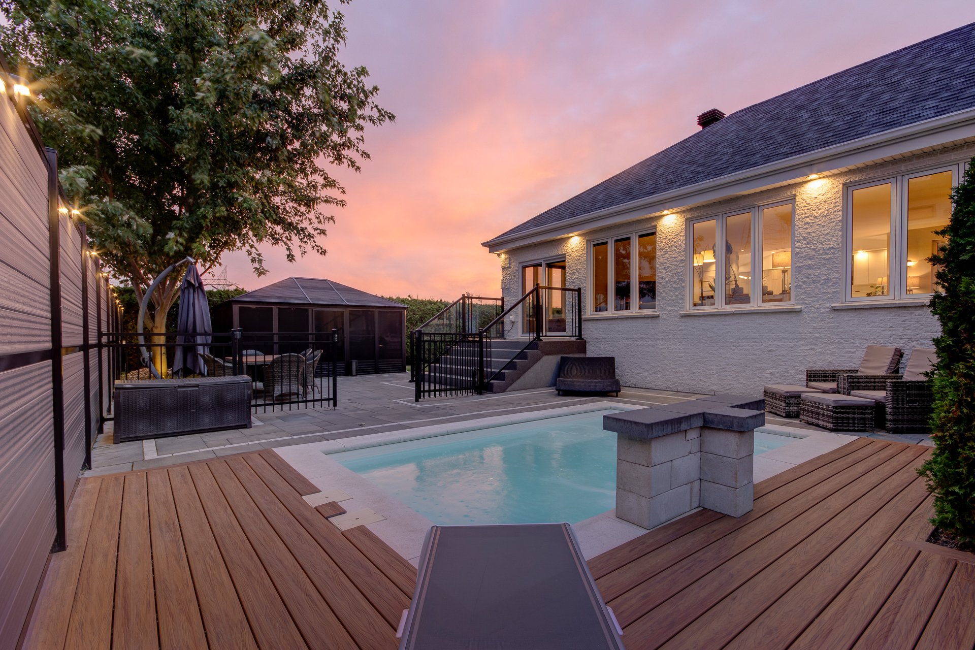 À l'extérieur, le grand terrain bordé de haies matures garantit intimité et tranquillité. L'espace est idéal pour profiter de la belle saison, que ce soit pour profiter de piscine creusée ou de de la terrasse