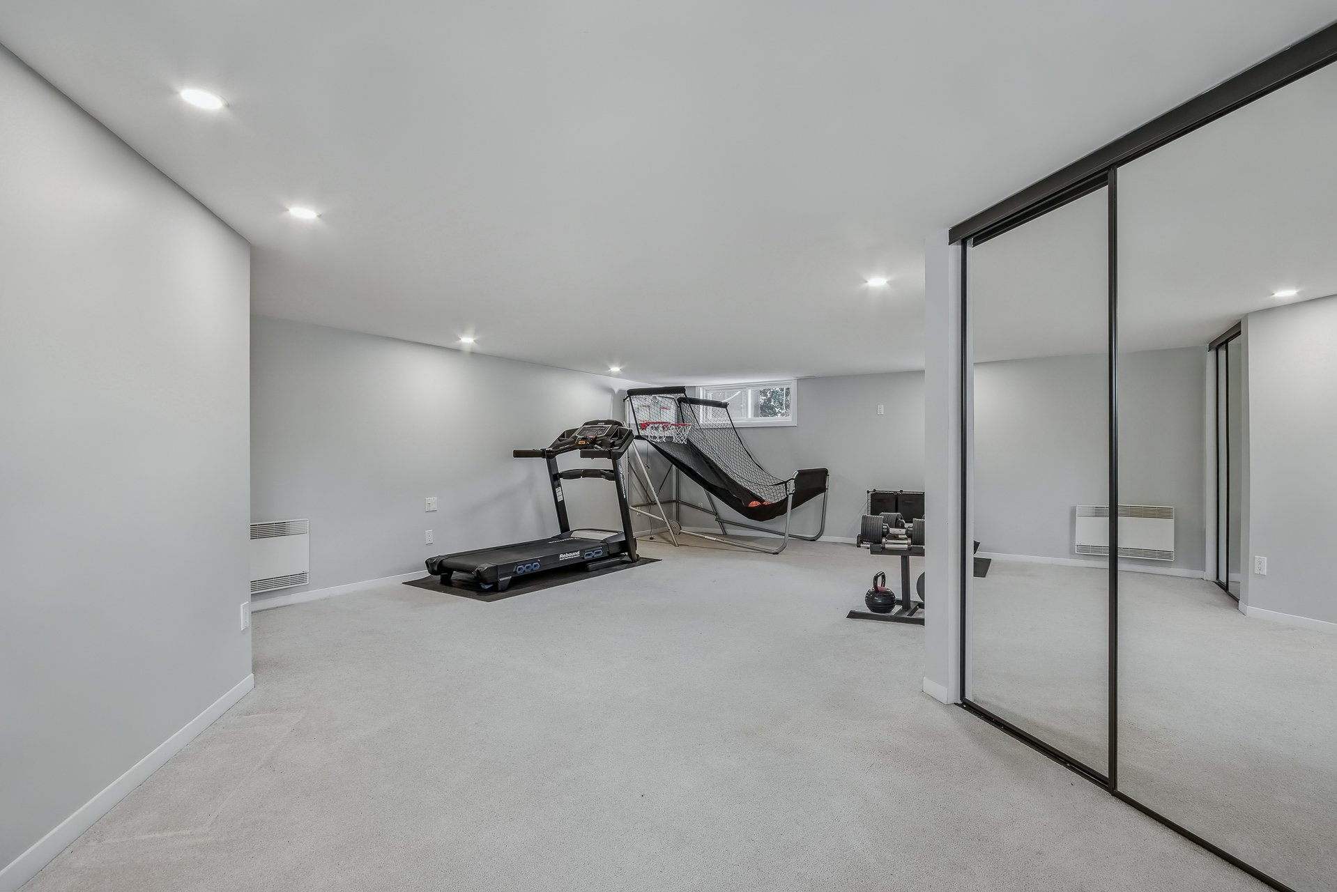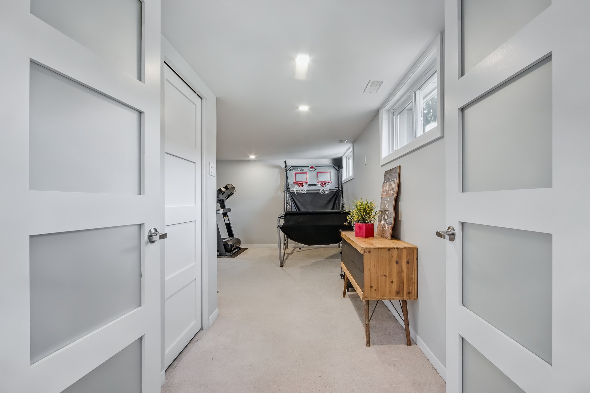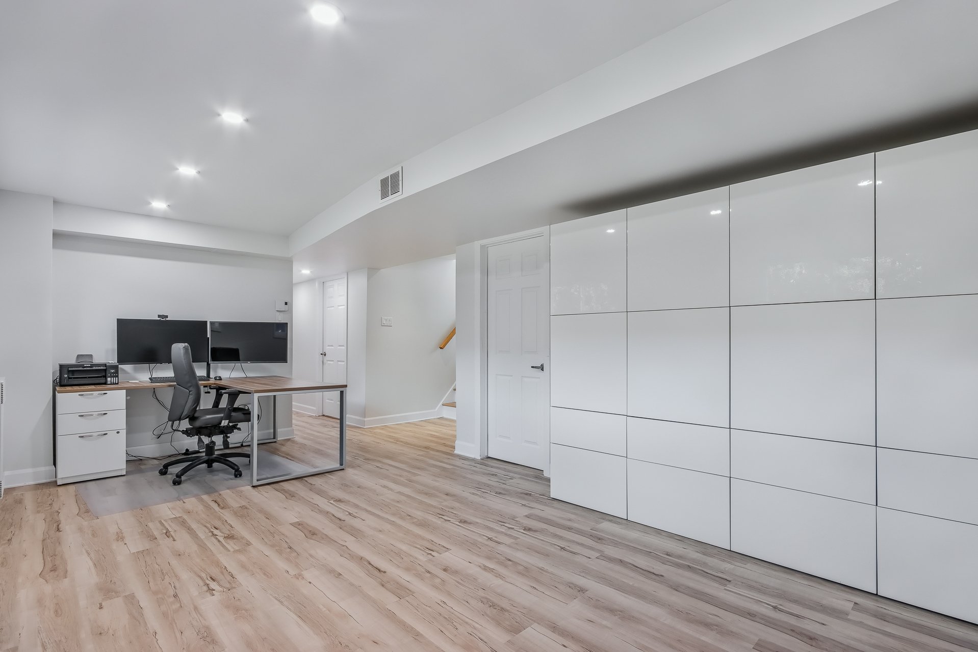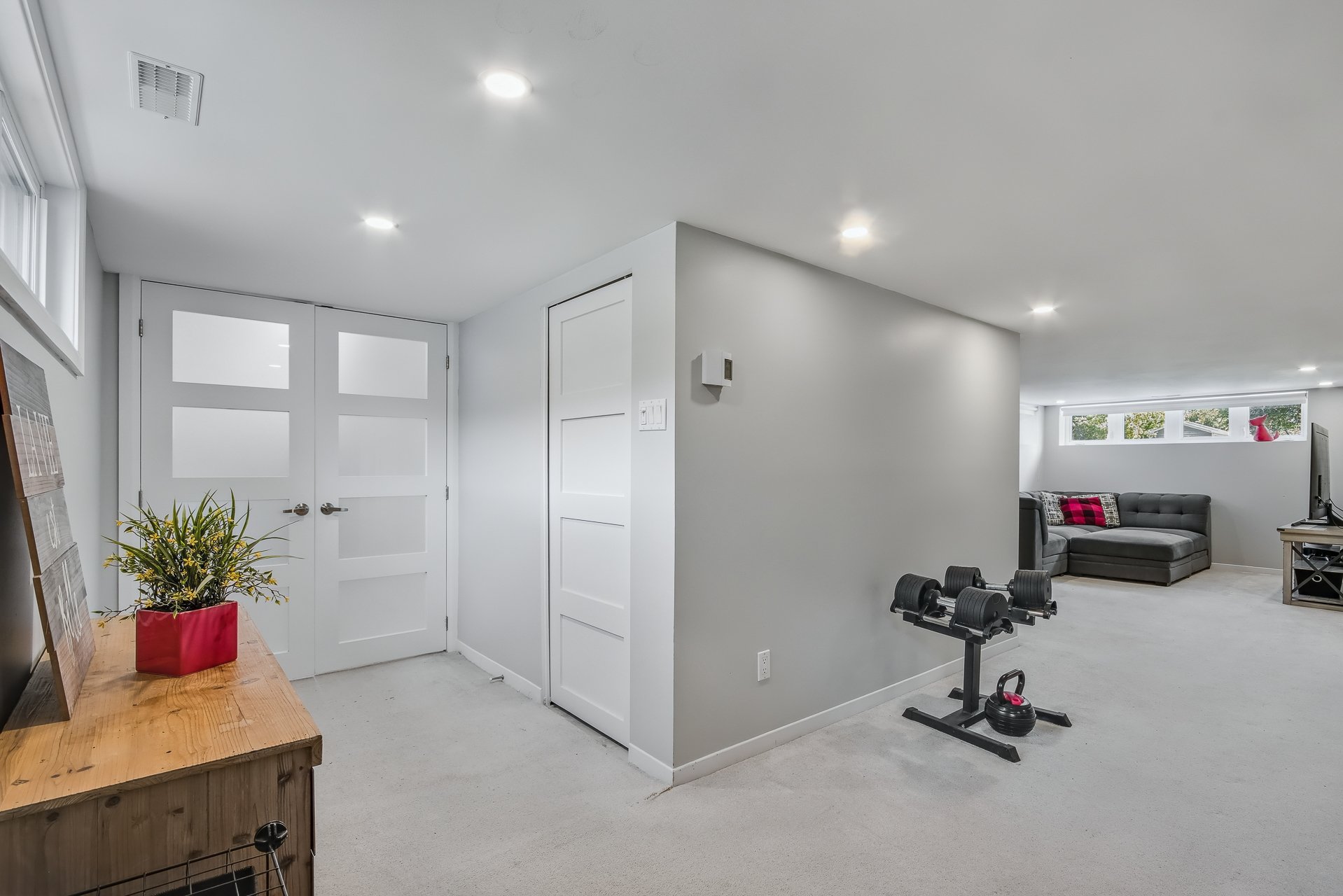 Le sous-sol, vaste et polyvalent, propose une grande salle familiale pouvant accueillir salle de jeux, cinéma maison, espace gym ou bureau selon vos besoins. L'aménagement offre également de multiples espaces de rangement et s'adapte à différents styles de vie, que ce soit pour une famille, des travailleurs à domicile ou des amateurs de loisirs intérieurs.