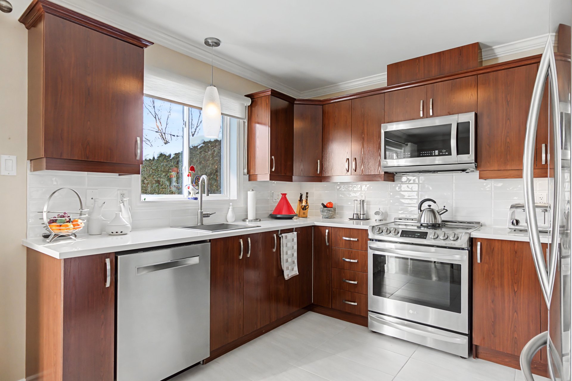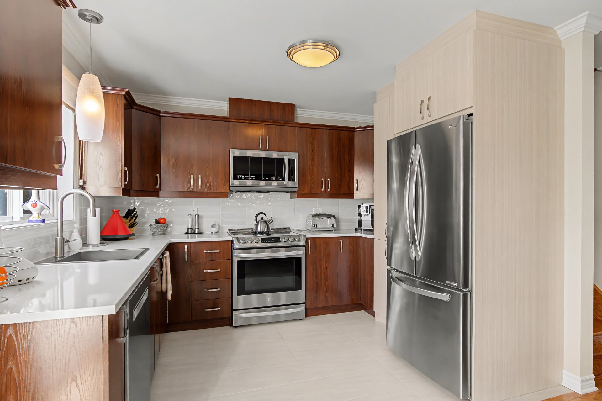 2017: Réfection de la cuisine, comptoir en quartz, ajout d'armoires et reconfiguration, dosseret, lavabo, robinetterie, plancher, nouveaux électros, peinture
