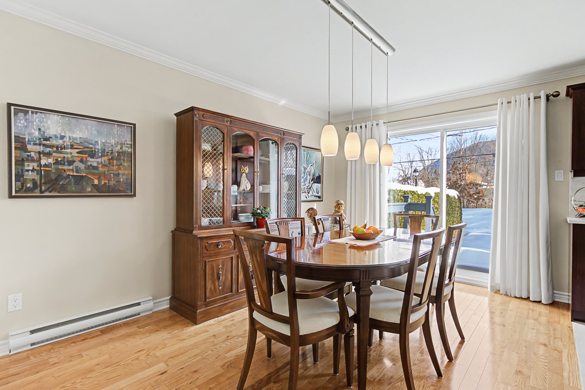 | Salle à manger | 1er niveau/RDC | 14.2x10.3 P | Bois | Porte-patio |