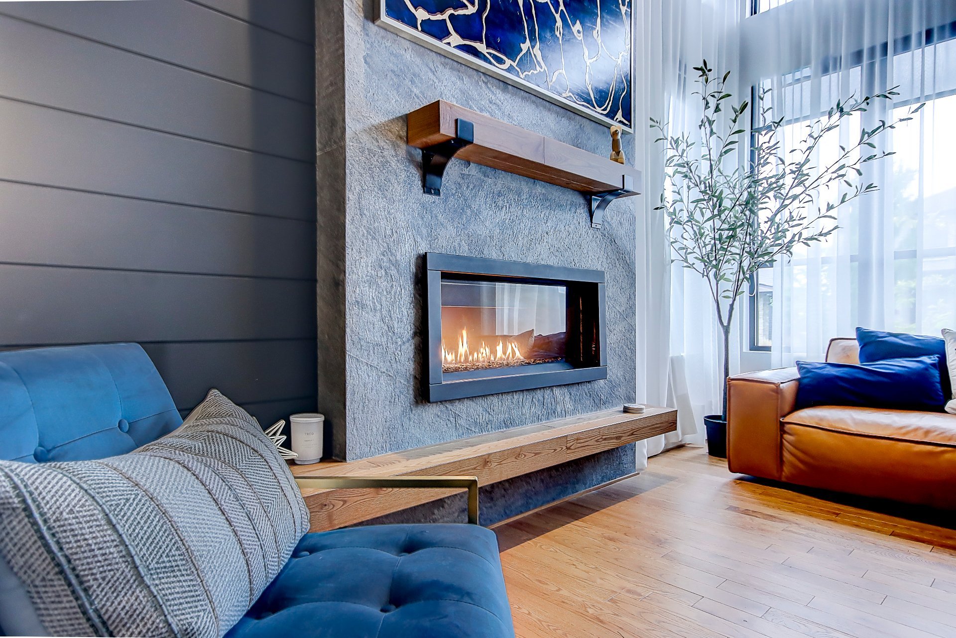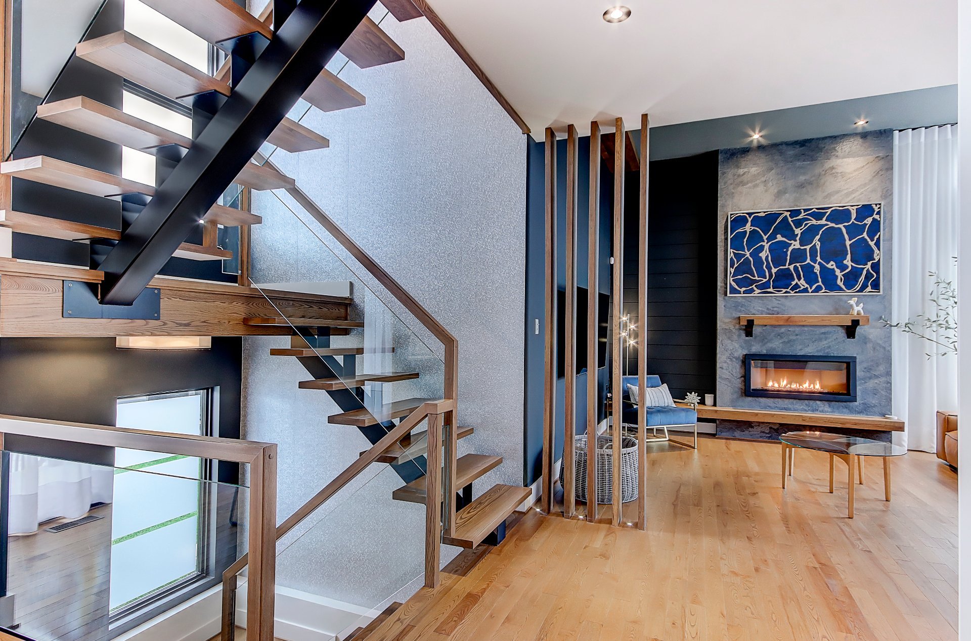*Salon avec foyer et plafond de 12'