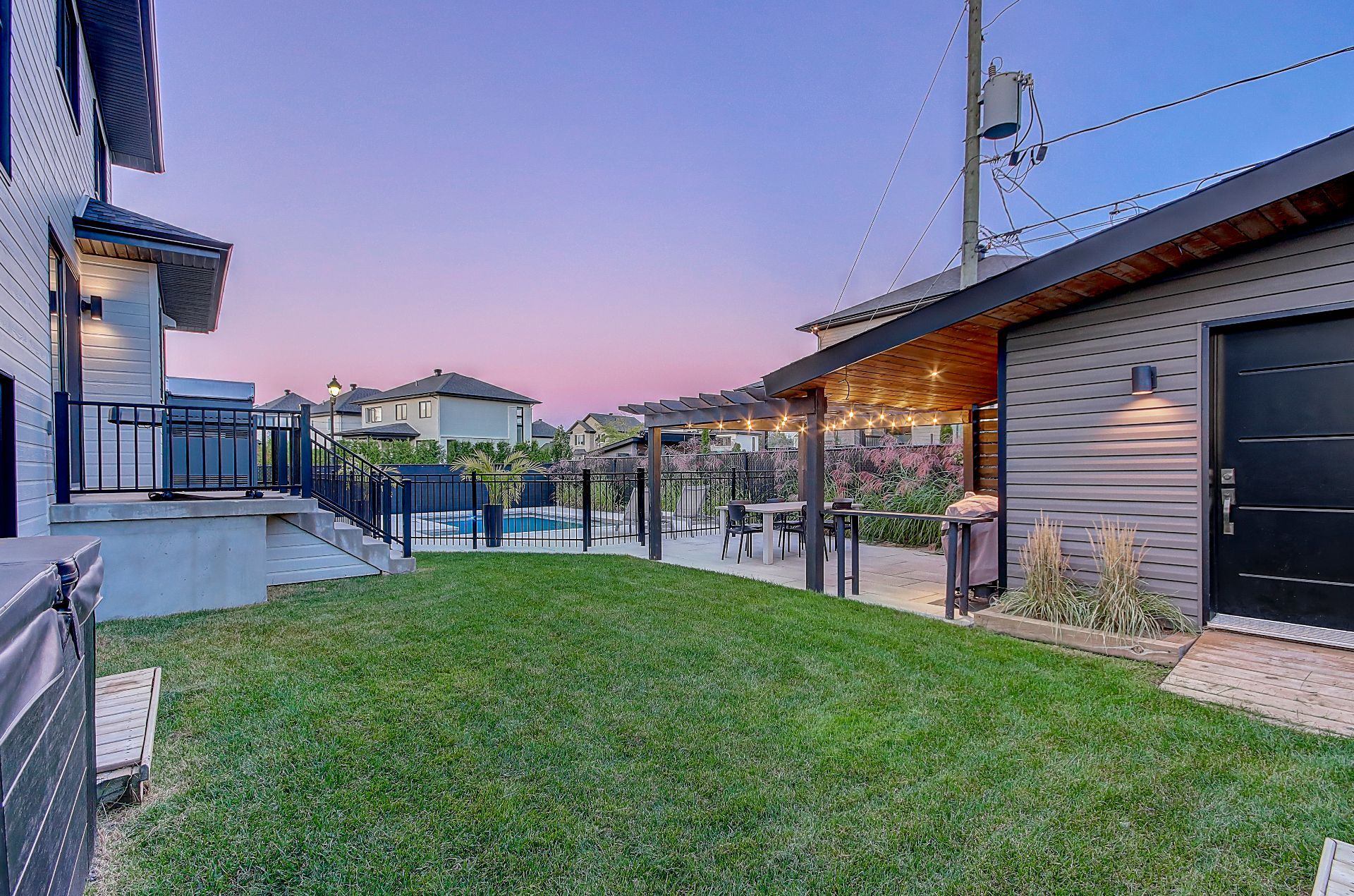 Luminaires, stores, pôles et rideaux, cellier, tous les supports de téléviseurs (5), balayeuse centrale et opérateur de porte de garage. Spa (Laissé sans garantie)